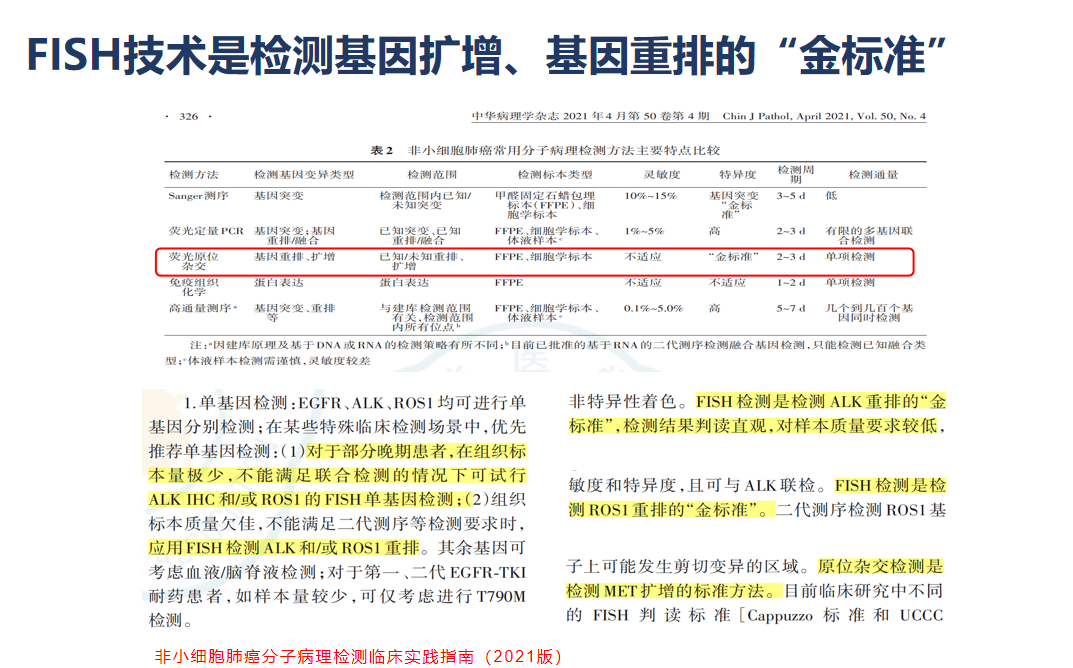 许教授详细介绍了FISH检测技术在病理科中的重要作用,并表示FISH技术是分子病理量身定制的一门技术。国内外指南指出,FISH技术是检测基因扩增、基因重排的“金标准”,可应用于乳腺癌、肺癌、淋巴瘤、软组织肿瘤、脑胶质瘤和泌尿肿瘤等实体肿瘤和血液肿瘤,具有肿瘤辅助诊断、鉴别诊断、指导用药、预后评估和早期筛查等重要临床意义。