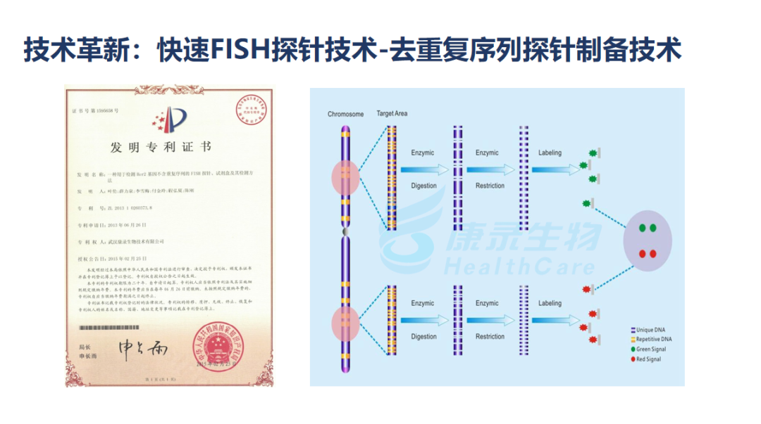 武汉康录生物技术股份有限公司坐落于国家生物产业基地武汉光谷精准医疗产业基地,公司以肿瘤早筛、肿瘤伴随诊断、肿瘤诊断和预后评估及心脑血管疾病等重大疾病精准医疗诊断产品为战略方向,是一家集研发、生产、销售和检测服务为一体的高新技术企业。公司拥有50多项发明专利,其中26项发明专利已取得授权,拥有完全自主知识产权的FastProbe®快速FISH探针制备技术处于国际领先水平,国内唯一拥有人类全基因组BAC克隆库,能为临床研究提供定制快速探针服务,同时为客户提供FISH检测快速化、自动化和智能化整体解决方案。