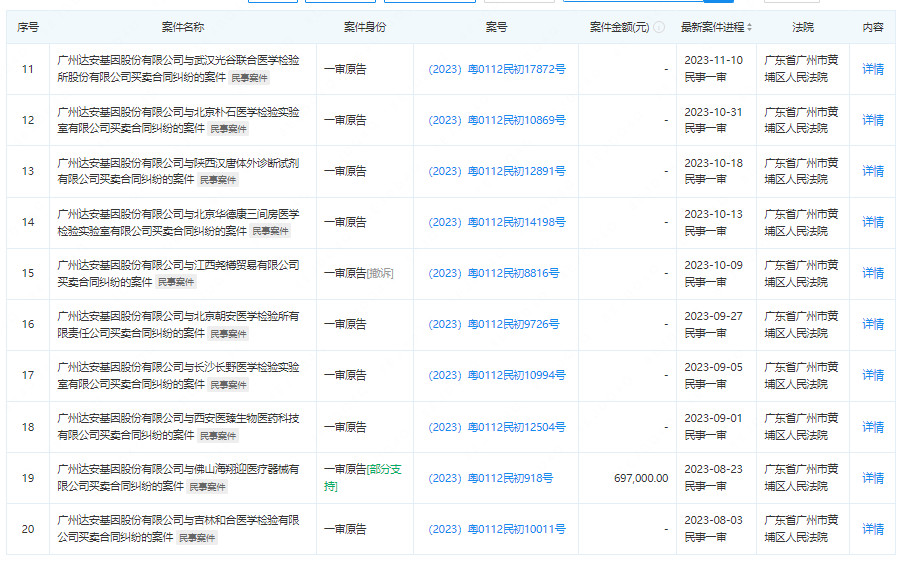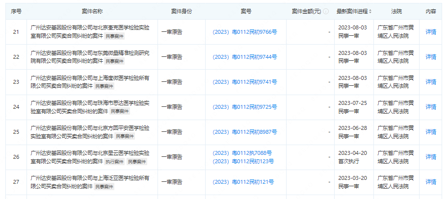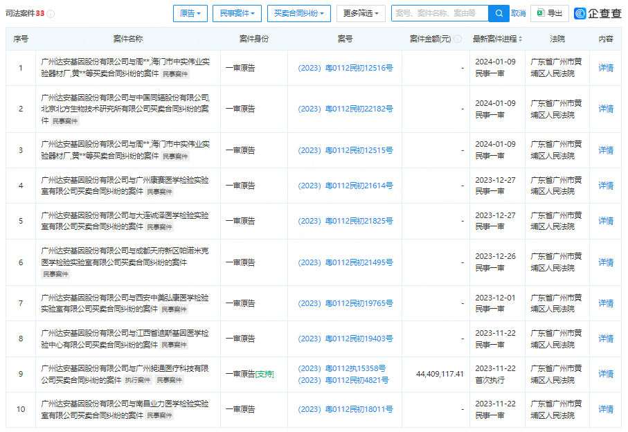达安基因截止到3季度应收账款有24.8亿,涉诉案件较多: