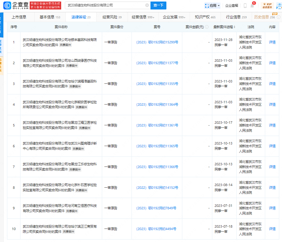 明德生物截止到3季度应收账款15.6亿元,涉诉案件: