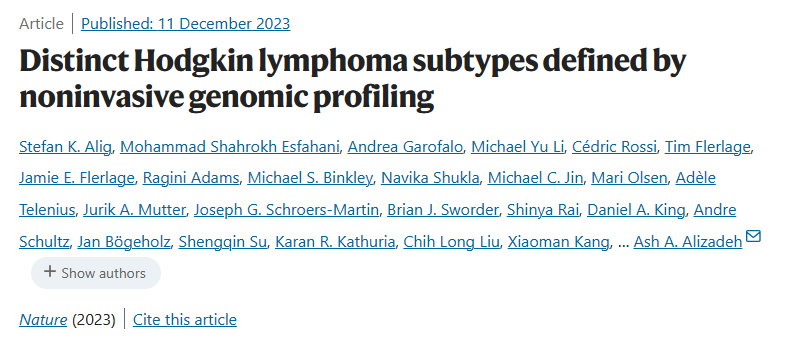 斯坦福大学领导的一项最新研究表明,基于循环肿瘤DNA(ctDNA)的液体活检分析特别适合经典型霍奇金淋巴瘤(cHL)的基因分型和动态监测。 这种肿瘤在分析时面临的主要挑战在于其含有较少的恶性细胞,而含有大量的浸润免疫细胞。 这篇题为“Distinct Hodgkin lymphoma subtypes defined by noninvasive genomic profiling”的论文于12月11日发表在《Nature》杂志上,支持了采用无创策略对cHL进行基因分型和动态监测,并捕获那些具有诊断、预后和治疗潜力的分子亚型。 斯坦福大学肿瘤学和血液学教授Ash Alizadeh及其同事在文中表示:“目前已发表的cHL群体相对较小,且采用的分析方法在基因组广度和深度上都很有限。造成这种现象的一个主要原因是肿瘤内的恶性细胞相对较少,通常只占肿瘤组织细胞总量的1%左右。” 研究人员对24例cHL患者的肿瘤和血浆配对样本开展CAPP-seq分析,并对9份活检样本中的87,500多个细胞进行单细胞RNA测序分析。结果表明,与肿瘤本身相比,cHL的改变主要集中在ctDNA上。他们指出,原因在于DNASE1L3基因编码的酶具有DNA裂解活性。 在此基础上,研究人员采用外显子组测序或其他靶向测序方法来评估来自366例儿童或成人cHL患者的ctDNA样本。 在此过程中,他们鉴定出以前未发现的cHL亚型,称为H1和H2,同时表明cHL ctDNA可作为一种灵敏方法来追踪疾病复发的特征,尤其是微小残留病(MRD)的存在。他们还强调了潜在的治疗靶点,包括影响白介素-4受体(IL4R)基因的突变。 总的来说,这项综合分析证明了cHL的突变集中在大多数患者的血浆中,而不是肿瘤标本中。与大多数人类肿瘤类型不同的是,cHL表达高水平的DNASE1L3基因。它编码的酶可能有助于维持cHL特有的支持性肿瘤微环境。 作者在文中指出,“丰富的体细胞变异基因组图谱让我们能够采用聚类方法来确定两种不同的cHL基因亚型(H1和H2),这两种亚型的特点分别是高突变负荷和基因组不稳定性”。 在探索残留病灶和复发的ctDNA线索时,研究人员还使用了一种名为PhasED-seq的方法,对来自109例成人cHL患者的319份血浆样本进行超灵敏的MRD检测。他们将该方法与一种名为RePhyNER的变异分型算法相结合,以追踪治疗应答和疾病缓解情况。 在持续缓解的cHL患者中,研究人员发现ctDNA水平随着治疗而急剧下降,在治疗早期ctDNA测量值特别低。相比之下,若患者在治疗期间和治疗后ctDNA持续存在,则复发风险增加,且无进展生存期缩短。 Alizadeh表示,这些结果共同表明,可以利用cHL患者的基线ctDNA水平、H1/H2亚型、IL4R基因型和基于ctDNA的MRD测定来评估最有希望的治疗方案、治疗应答和管理策略。 “例如,ctDNA MRD水平可用来指导以缩短系统治疗时间为目的的试验,或指导将新型疗法纳入一线治疗的试验,包括PD-L1抗体,如pembrolizumab、nivolumab、tislelizumab或其他疗法,” Alizadeh建议说。 参考文献 Distinct Hodgkin lymphoma subtypes defined by noninvasive genomic profiling |