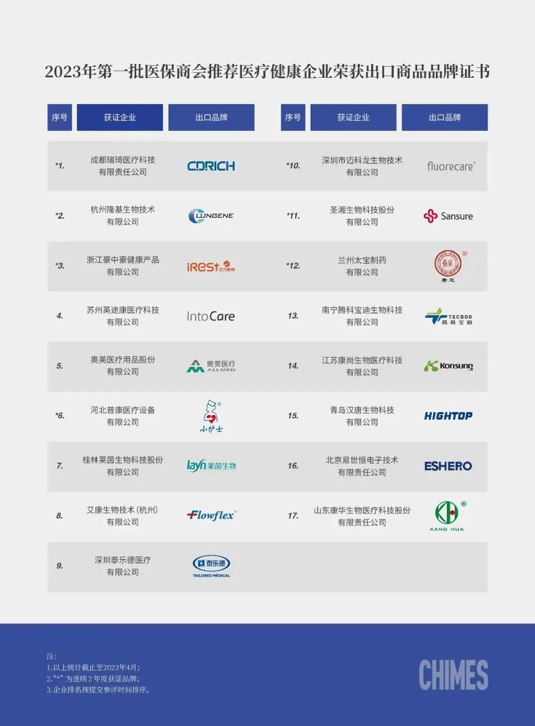 2023年第一批医保商会推荐获证出口商品品牌