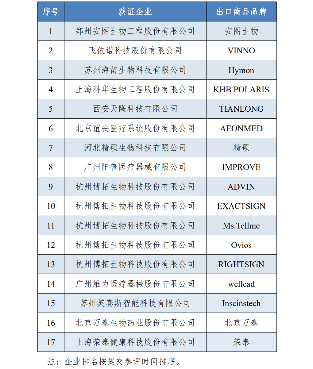 22家IVD企业荣获“出口商品品牌证明书”(2023年)