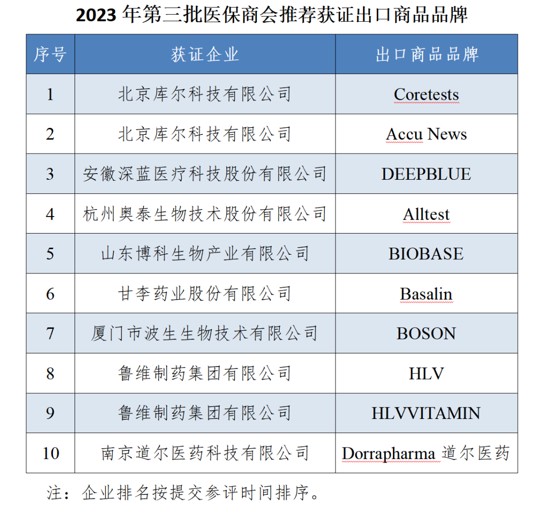 2023年第三批医保商会推荐获证出口商品品牌