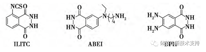 常见的鲁米诺发光试剂包括有异鲁米诺异硫氰酸酯(ILITC)、N-( 4-氨基丁基) -N-乙基异鲁米诺(ABEI )以及4,5-二氨基邻苯二酰肼(DPH)等已经应用于很多领域。因为含有鲁米诺部分的发光试剂发光强度低而且合成困难,所以相关新型衍生物的报道不太多。