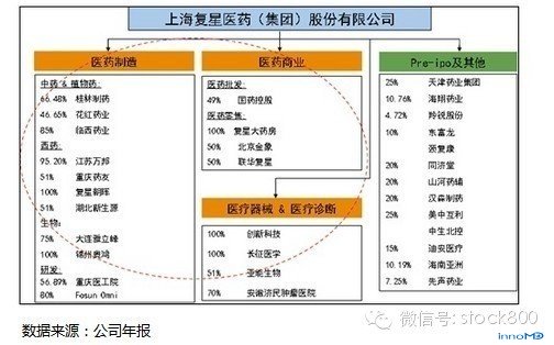 如图所示,复星医药完成了它在产业链上的布局,在医药制造领域里,它投资有中药、化学药、生物药;在医药商业领域里,它投资有批发、零售,除此之外还投资了医疗器械和医院;PRE-IPO项目里投资了天药、海翔药业、羚锐股份、东富龙、同济堂、山河药辅、汉森制药、美中互利、中生北控、迪安诊断、先声药业等。看了它的投资布局就知道这个公司对行业的理解很到位,因为前面我们讲过,这个行业虽然机会很多,但“黑天鹅”也很多,所以投资要有布局和组合,还有投资策略问题,哪些是需要控股的,哪些是去PRE-IPO的。某个被投资的企业出了问题没关系,用其它公司的投资收益来弥补,只要行业不出问题就没关系。它变成了一个医药行业优秀企业的平台,在这个平台上,企业在产业链上可以相互协同。 2011年复星医药实现销售收入64.8亿元,净利润11.65亿元。截至2012年7月6日收盘,复星医药总市值为218亿元。由于它本质上是个大的PE公司,所以并不像恒瑞、云南白药那样拥有比较高的估值,但它整个的投资是非常成功的。 以复星投资国药控股为例,2003年,复星以5.04亿元现金出资,与国药集团成立国药控股,占注册资本的49%。 国药控股是一个什么样的公司?它是中国最大的药品分销商,拥有全国性的药品分销网络;2011年销售收入超过1000亿元人民币约占市场份额的15%;自成立以来,国药控股的年销售收入复合增长超过40%,其中60%以上来自内生式增长(非并购)。从历年的分红统计上,它当时投的5个亿早就已经收回来了。2011年12月31日,国药控股总市值达到448亿元,复星目前持有32%,按此计算复星持有的股权价值为143亿元。这也是一个经典的投资案例。 所以,只要对产业有深刻的理解和正确的投资策略,其实不难!复星开始投资这个行业的时候也是交了一定学费的,最初投的一些企业其实也不算好,但后来就越投越好,完成了产业链的布局。 三、中国医药产业地图与投资机会 我们知道,医药行业比较复杂,如果想对行业有深刻的理解,恐怕短时期内很难做到,对于那些希望抓住当前机会的投资者来说,有没有一种快捷的方法,能够迅速理解这个行业? 答案一定有! 想必大家都看过武侠小说,武侠小说经常有的一个情节就是寻找藏宝图,各路豪杰经过你死我活的争斗,最后的获胜者得到一张藏宝地图,然后按图索骥,找到宝藏。医药行业投资是否也存在这样的藏宝图? 我们经过研究,勾画出了下面几张图,不敢以藏宝图来自居,只是希望能够通过这几张图让投资者在茫茫的医药行业投资中找到一丝线索。 下图:中国的医疗保健体系