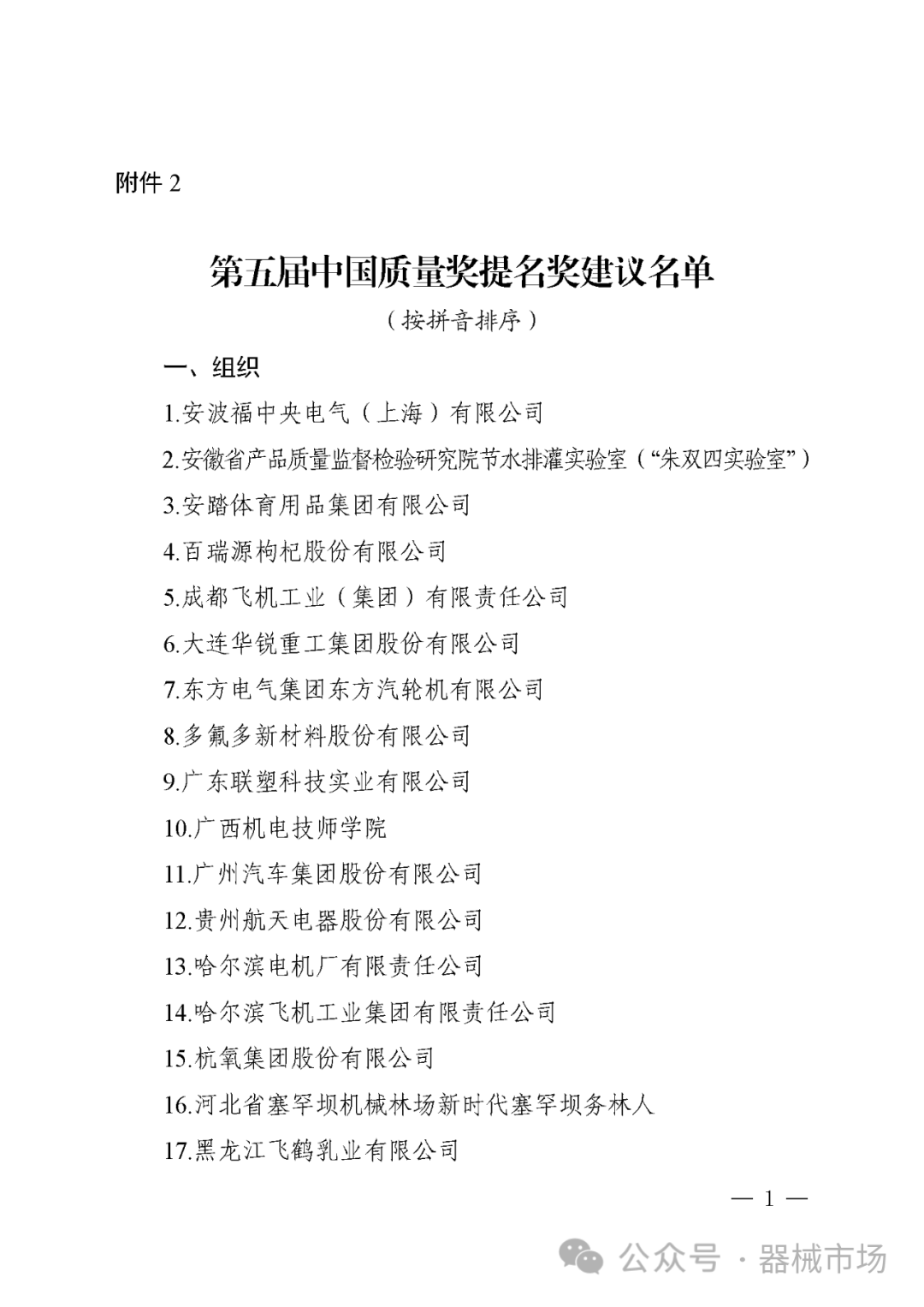 按照《中国质量奖管理办法》规定,经第五届中国质量奖评选表彰委员会投票表决,10家组织进入第五届中国质量奖建议名单,78家组织、6名个人进入第五届中国质量奖提名奖建议名单,现将名单予以公示。