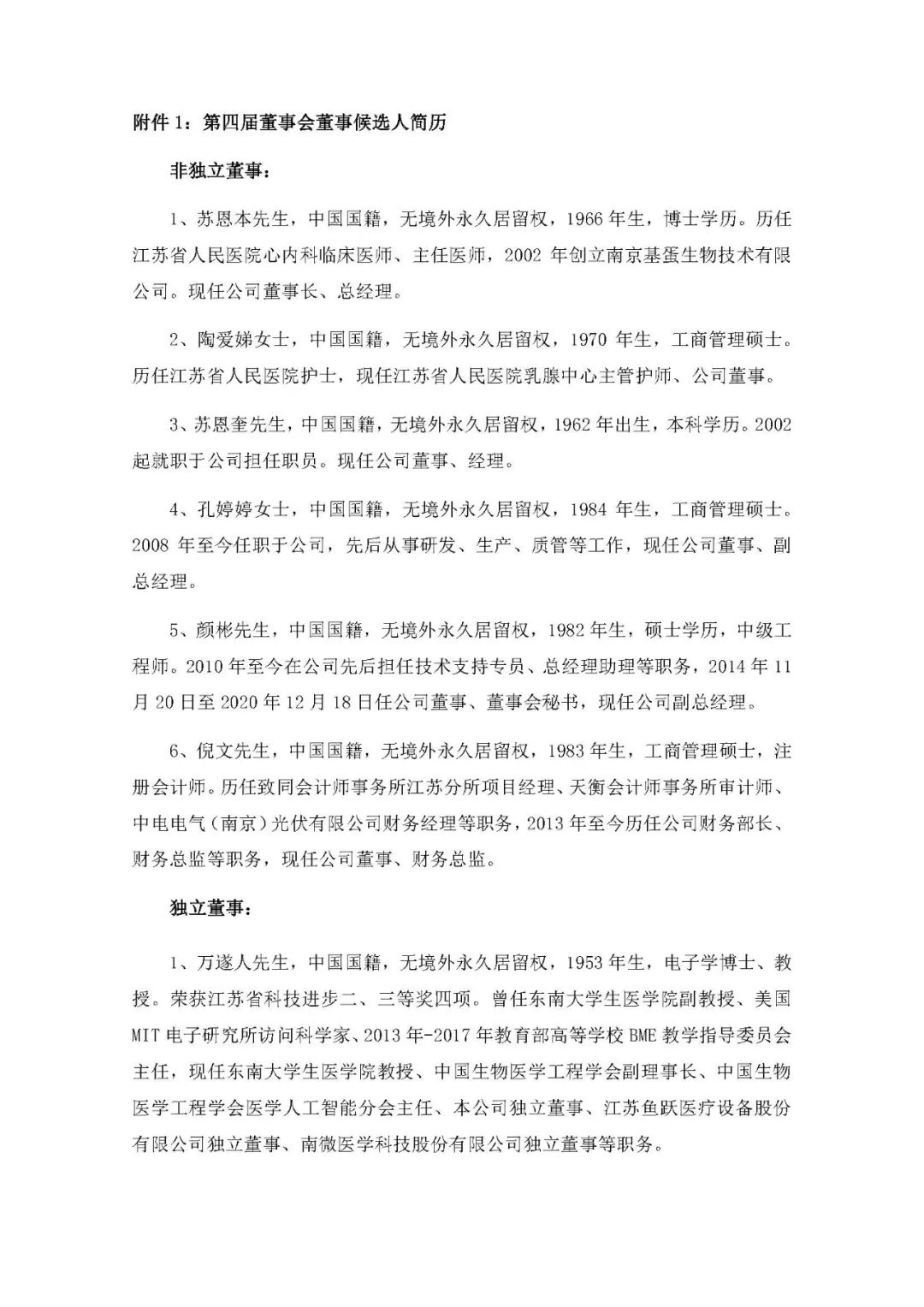 2、董事会成员:苏恩本先生、陶爱娣女士、苏恩奎先生、孔婷婷女士、颜彬先生、倪文先生、万遂人先生(独立董事)、鞠熀先先生(独立董事)、凌华女士