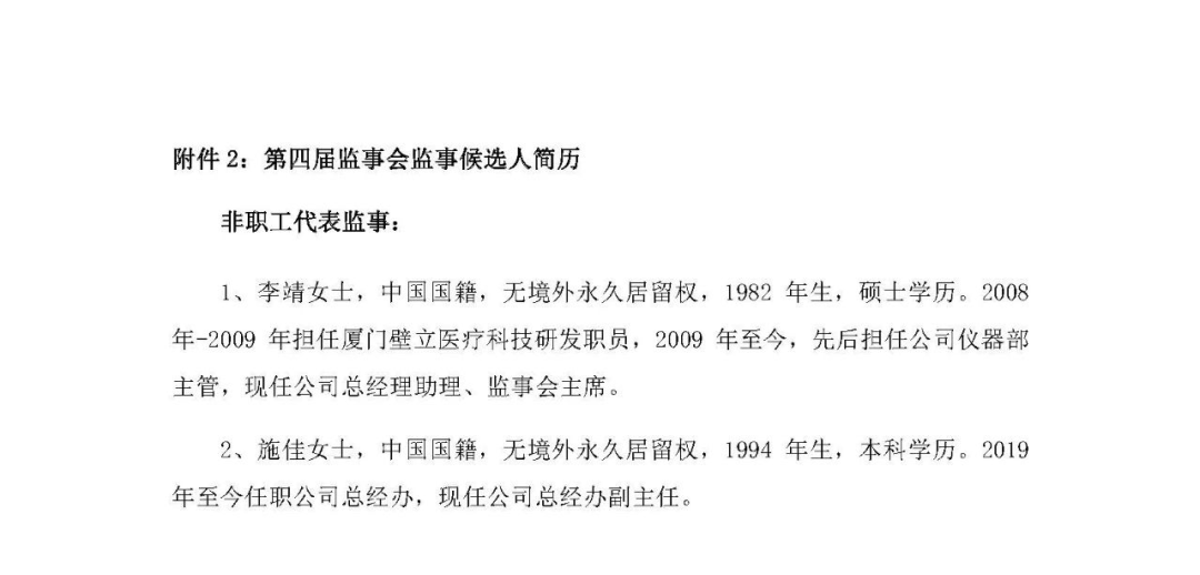 1、监事会主席:李靖女士;2、非职工代表监事:李靖女士、施佳女士;3、职工代表监事:张武先生。