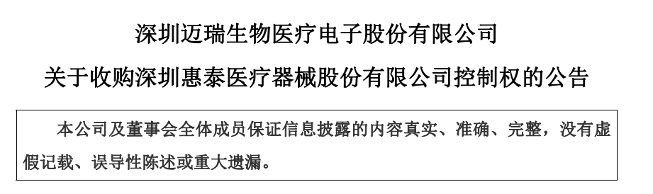 1月28日,“器械一哥”迈瑞医疗发布公告:公司拟通过全资子公司“深迈控”以66.52亿元的价格收购成正辉等合计持有的上市公司惠泰医疗21.12%股份,且“深迈控”拟受让晨壹红启持有的珠海彤昇全部0.12%的普通合伙权益(珠海彤昇目前持有惠泰医疗3.49%的股份)。 若上述交易完成,迈瑞医疗将直接持有惠泰医疗总股本的21.12%,且与其一致行动人珠海彤昇合计持有惠泰医疗总股本的24.61%,实现了对惠泰医疗的控股。 这笔交易,无论怎么看都是一笔“win-win”的交易,迈瑞医疗一直在寻求优质资产的收购,这一次以极低的代价获得了一家A股优质上市公司的控股权,补全了公司在电生理和心脑血管领域的短板;惠泰医疗的实控人实现了大额套现的同时,靠上了迈瑞这棵大树,有益于公司未来长远发展。 不过,从1月29日的盘面看,市场的投资者似乎并不这么认为。 迈瑞医疗当日股价高开低走,最终收报269元每股,跌幅5.39%;惠泰医疗也同样高开低走,最高涨幅16.77%,最终收报377元每股,涨幅4.57%,市场表现与股份转让每股471元的转让价格相去甚远。 关于这笔收购,市场到底察觉到什么不一样的细节? 01 控股股东的胜利,而并非投资者的胜利 于迈瑞而言,其以“最小的收购代价”完成了对惠泰医疗的控股,值得称道。 中短期于股东而言并非是多大的利好,可以看到本次转让股份的主体成分主要分两大类,一是实控人父子、高管or员工持股计划,二是启明系的一众基金or有限合伙,真正实现溢价退出的是这两拨人。 对于其他股东,迈瑞医疗愿意以溢价收购惠泰医疗控股股东股份,这至少有迈瑞背书证明公司价值被低估,从而可能形成市场情绪补齐差价的退出窗口,这是最直接的好处。 尽管收购预案的抛出犹如给市场情绪打了一剂肾上腺素,但其仍会被各种各样的因素影响而导至不能完成收购,比如监管机构的审查、双方任意一方因部分理由的取消交易等。 所以,即便是欧美市场中“最强有力”的全资收购,消息释放后被收购的公司股价表现往往会较收购价位有一个折扣来反应不确定性。就以最近发生的阿斯利康全资收购亘喜生物的事件为例,对价为10亿美元首付款加2亿美元里程碑(总价12亿美元),而到目前为止亘喜生物市值为9.73亿美元,仅接近补齐了首付款的价值。 显然,迈瑞医疗控股惠泰医疗交易过程中,投资者也要承受一定的不确定性,除监管原因之外还包括迈瑞医疗对惠泰医疗的整合与过渡、原有团队积极性消退等影响。 可以肯定的是,控股股东是最大的赢家,其他投资者获益部分并不大。 02 收购方大跌的诱因,不信任情绪和质疑并表价值 迈瑞医疗的大跌,实质上很出乎市场预料,预计可能是两个核心诱因导至的。 作为国内“器械一哥”,迈瑞医疗向来以稳健著称,现金储备也十分丰厚,截至2023年三季度末,公司货币现金高达196.67亿。 此次收购惠泰医疗股权采用现金收购的交易模式,有部分公司投资者也感到不适,尽管66.5亿约公司现金储备的三分之一,但有投资者提到公司完全可以以小部分现金+部分等值股权交换来实现控股。 投资者的担忧并非不可理解,溢价收购向来是上市公司现金流失的“重灾区”。在国内过去十年的资本市场历史中,有大量上市公司通过“溢价收购+抽屉交易”实现上市公司资金套现,再通过收购资产业绩不及预期等原因对商誉进行减值的财务处理完成整体闭环。 不过,从惠泰医疗的2023年业绩预告看,当年实现归母净利润5.10-5.65亿元,预估本次收购对价的市盈率在55-62倍左右。对于惠泰医疗在国内的电生理产品和商业化能力,收购价格可以算合理。 另外一方面,也有投资者质疑这项控股交易对于迈瑞医疗整体报表的益处,惠泰医疗2023年整体的营收和净利体量分别在17-18亿和5亿,迈瑞医疗仅控股20%出头,就算并表,对整体并表的营收和净利增益也仅有4亿和1亿左右。 有没有一种可能,或许对于迈瑞来说,收购惠泰医疗控股权只是公司抛出的一枚先锋卒子,后续将通过不同的方式来强化控股比例;另外,迈瑞医疗也可能通过获得惠泰医疗产品,来提升商业化团队的人均产出,从而对公司形成叠加的正向影响。 03 收购暴露迈瑞的软肋? 自迈瑞医疗2018年上市以来,一直保持着营收、利润20%+的增速,从未失约。正因迈瑞医疗如此稳健发展,公司营收已从2018年的137.53亿元增长至2022年的303.66亿元,净利润也从37.19亿元增长至96.11亿。 但随着体量越来越大,20%+的“稳定”增速指引自然会对当前公司业务的成长性形成巨大的考验。 特别是在外部因素的扰动下,迈瑞医疗2023年三季度实现营收88.28亿元,同比增长11.18%;实现归母净利润33.92亿元,同比增长20.52%。拉长到2023年前三季度看,营收同比增长17.38%,归母净利润同比增长21.38%。 2023年已现疲态,以后,迈瑞医疗面对的内外部挑战更多,保持稳定的增速不仅挑战更大,也急需外拓。 从公司目前三条大业务线来看,原本大家最不看好的生命信息与支持板块(公司第一大比重业务)因为疫情反复和医疗新基建等多项因素成为2023H1公司增速最快的板块(同比增长27.99%),体外诊断这个备受期待的未来公司第一大增长主力板块则在2023H1录得了同比16.18%的增长,医学影像板块2023H1则是维持双位数出头的增速(同比增长13.4%)。 迈瑞医疗的四大新业务板块,其中有三个在近几年走出了非常靓丽的增长曲线,不过大多数业绩基数较低,利润有限或甚至可能亏损。