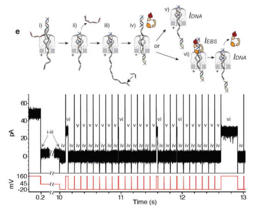前言: 交叉着写点底层技术的文章吧;最近一直看纳米孔的老古论文,越来越觉得,技术的创新是那么困难,那么多课题组前赴后继,耗费了大量的精力和经费,往往也只是成为了后人的垫脚石,你根本不知道,技术创新何时能够量变到质变,也根本不知道你是否是那个上岸的幸运者; 国人科学仪器创新极少,metoo极多,固然有我们作为发展中国家本身底子弱、发展晚的必然因素,但如果基础科研继续没有严格的创新评判和激励,而产业经济调控、专利保护还是形同虚设的情况下,那劣币驱逐良币,创新必然没有土壤,行业必然极速内卷,待到安鸿遍野之时,国外的技术创新者又跨过了一条遥遥领先的新河,爬上了又一座我们必须仰望的高峰。 而国内一堆看到illumina专利过期了,才开始跟疯的所谓国产NGS企业,结局不言而喻。 承接三代测序学习笔记-技术起源3,本文我们来讲讲接头的发明故事;附上《繁花》大结局的某段字幕截屏作为前言总结。 马达蛋白的优选及棘轮运作原理 而经过技术起源1、2、3的学习,我们应该都知道了,三代测序的必备组件是,膜,减速蛋白(即马达蛋白),纳米孔蛋白。这是三块大零件。 在三代测序学习笔记-技术起源3里面讲到,MspA最终因为更短的读点造成更特异性的性能取代了a-HL纳米孔蛋白,然后大肠杆菌膜表面孔蛋白CsgG又因为更收缩的孔内读点成为替代者,再之后CsgG和GsgF形成的融合孔道蛋白又因为形成了更独特的双读头结构,成为了更优异的候选者。 而其实马达蛋白的选择也不是一帆风顺的。 理所当然,马达蛋白肯定必须有和DNA/RNA有极佳的亲和力,又有着棘轮/齿轮般的结构功能。科学家一开始瞄着的就是 天然的核酸酶类,大自然就是巨大的工具宝库,各种工具酶实在太多了,有一些公众号写得特别好,比如:用于“修饰核酸分子”的工具酶,“DNA聚合酶”都有哪些你知道么?;为了筛选可靠的工具酶类,比较知名的研究有:能结合单链DNA的大肠杆菌外切酶 I(Escherichia coli Exonuclease I ),能结合RNA的噬菌体phi8的APT酶(bacteriophage phi8 ATPase ),还有几种3'-5'外切酶活性缺失的DNA聚合酶如 家族A DNA聚合酶(A-family DNA polymerases)、大肠杆菌DNA聚合酶的Klenow片段(Klenow Fragment )、噬菌体T7的DNA聚合酶(bacteriophage T7 DNA polymerase, T7DNAP(exo-))等。 在这篇垫脚石文章(研究T7和KF)中:Replication of Individual DNA Molecules under Electronic Control Using a Protein Nanopore;Felix Olasagasti1, Kate R. Lieberman1, Seico Benner1, Gerald M. Cherf1, Joseph M. Dahl1, David W. Deamer1, and Mark Akeson1,*,作者做了非常有意思且烧脑的方法学探索: 然后通过复杂的缓冲液化学环境和正反电压的控制:穿过纳米孔,通过线头把阻断链撤掉脱落,带负电的DNA链通过纳米孔,但是控制好,不能都跑过去就完了!然后再反相电压,让核酸拉扯着DNA在纳米孔中反向移动,然后没有阻断链的保护下,DNAP又能结合上去,然后DNAP行使棘轮的功能,让DNA链再通过纳米孔。 可以想见,这种复杂的机制,带来了巨大的不可控性,难以使测序流程标准化、工业化。 还有一个问题是:T7DNAP(exo-)的确能组装在α-溶血蛋白(α-HL)纳米孔上,也能够在一定电压下将DNA运输到膜的另一端,但是施加电压后,很不稳定,降低了本来就困难的信噪比。 Yvette Kolodji, and Mark Akeson*。证明了phi29 DNAP 结合在纳米孔上的时间是家族A DNA聚合酶的10000倍。再结合phi29 DNAP本身的链置换活性(解链)和3'-5'外切酶活性,设计了两种过孔模式。 这两种机理看起来都不错,存在的问题是都需要依赖对核酸链3′末端进行化学保护:正常的3'末端是OH,而该文章发现如果3'末端是H的话,DNAP的3'-5'外切酶活性会被短暂地抑制。因此在这种条件下,供DNAP和核酸结合的时间窗口也仅有20min。这同样也是不适合商业化测序的。 该篇文章创造性地设计了一种全新的阻断引物,即让猪八戒抱着西瓜,但是下不去嘴。如下图b,25个碱基长度的阻断引物的5’端有两个吖啶集团,3'端同样也有非互补链的一个线头。下图c证明了这种结构的绝佳稳定性,在phi29 dNTPs (聚合酶延伸DNA的原料)和 Mg2+都存在的条件下,长达5h,保持不被DNAP的外切酶活性或聚合酶活性影响。 最后我们看下纳米孔标准建库方法: 最后一步加tether,是个什么用途呢?该分子就像一个船锚,用于锚定DNA或RNA链,防止在溶液中飘动,并促使其进入纳米孔中。具体什么成分,不想花篇幅了,我猜应该是某种亲脂成分,查专利,查文献,果然如此。 也有文献专门研究此方法: 至此,零件拼图结束. End. |
