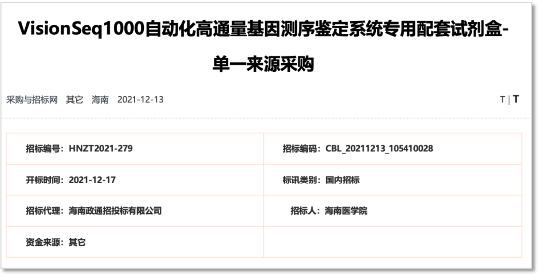 所以可以看到,基因测序领域、或生命科学领域,按“单一来源采购”方式进行的项目,并不鲜见
