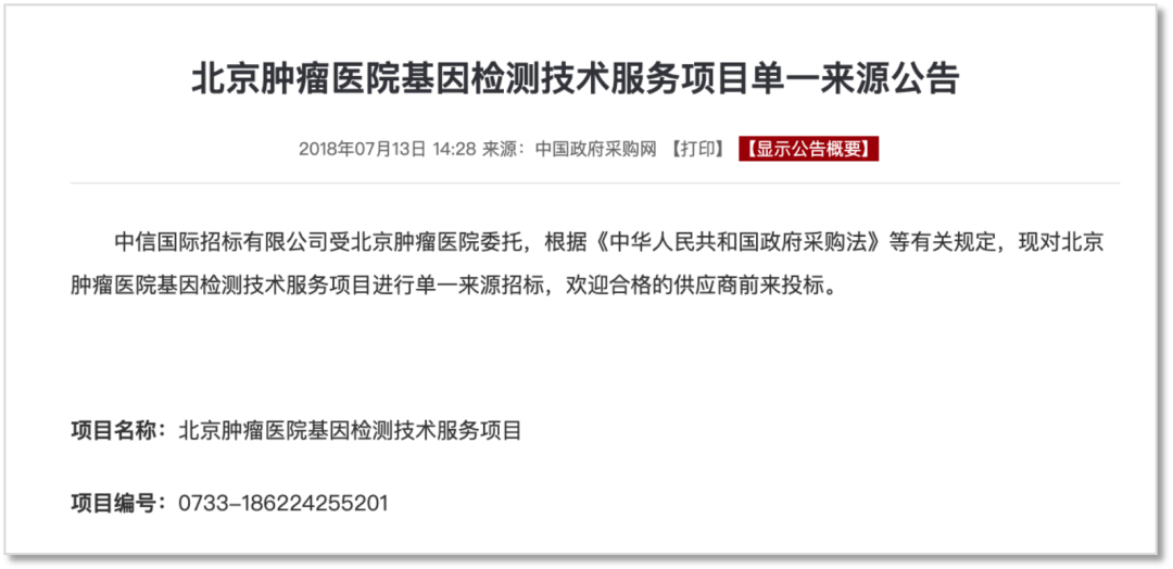 采购项目:北京肿瘤医院基因检测技术服务项目