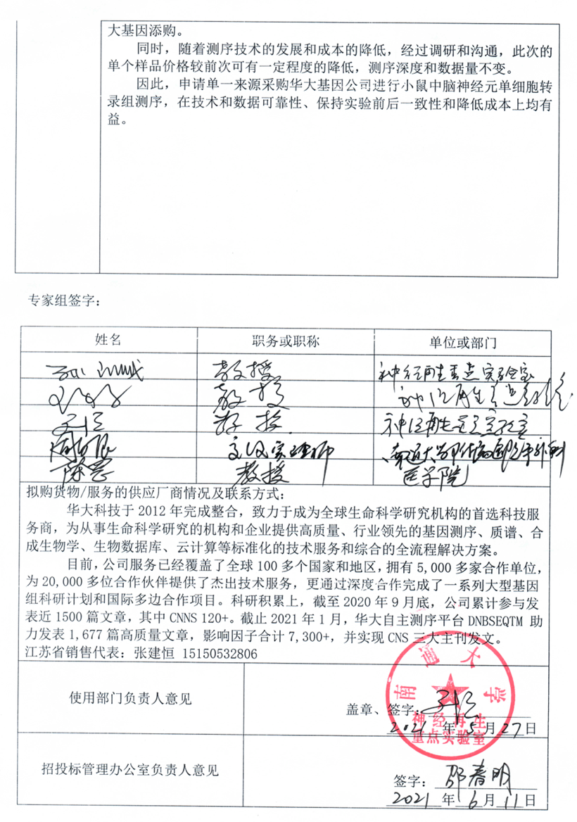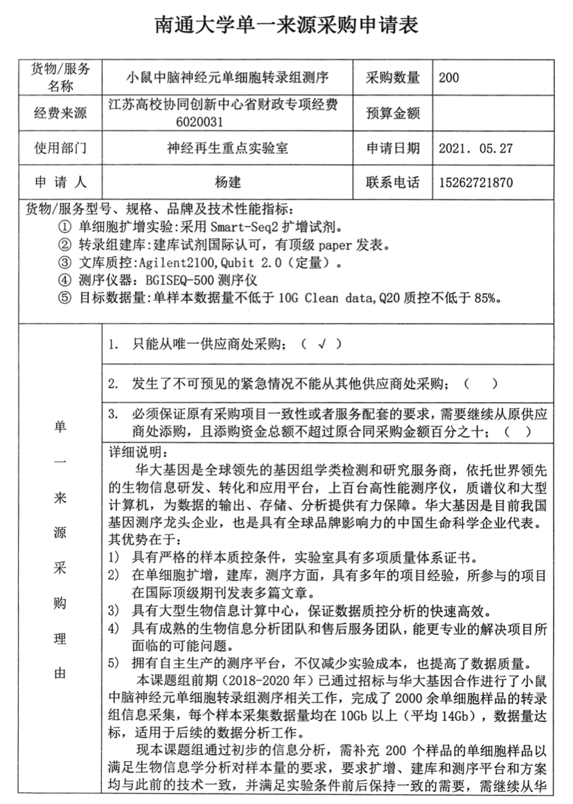 课题组经市场调研,北京美吉桑格生物医药科技有限公司可提供最低的测试价格,同时能够开放服务器资源供课题组使用,且平台服务器操作方便。该公司进行技术服务测试可以快速完成测试要求,而其他公司无法满足以上全部要求。经专家论证,特申请以单一来源方式采购北京美吉桑格生物医药科技有限公司测序及分析技术服务。