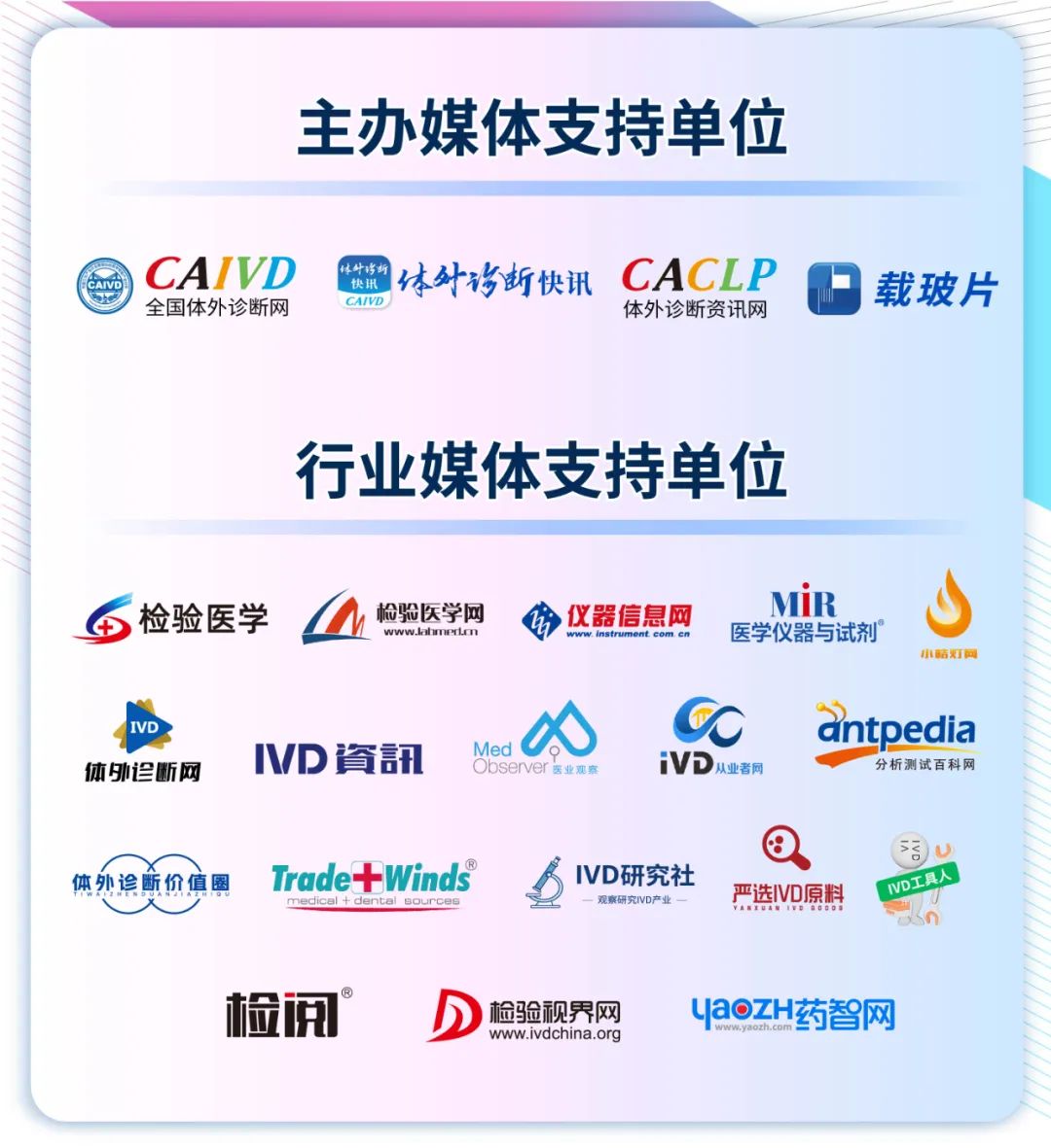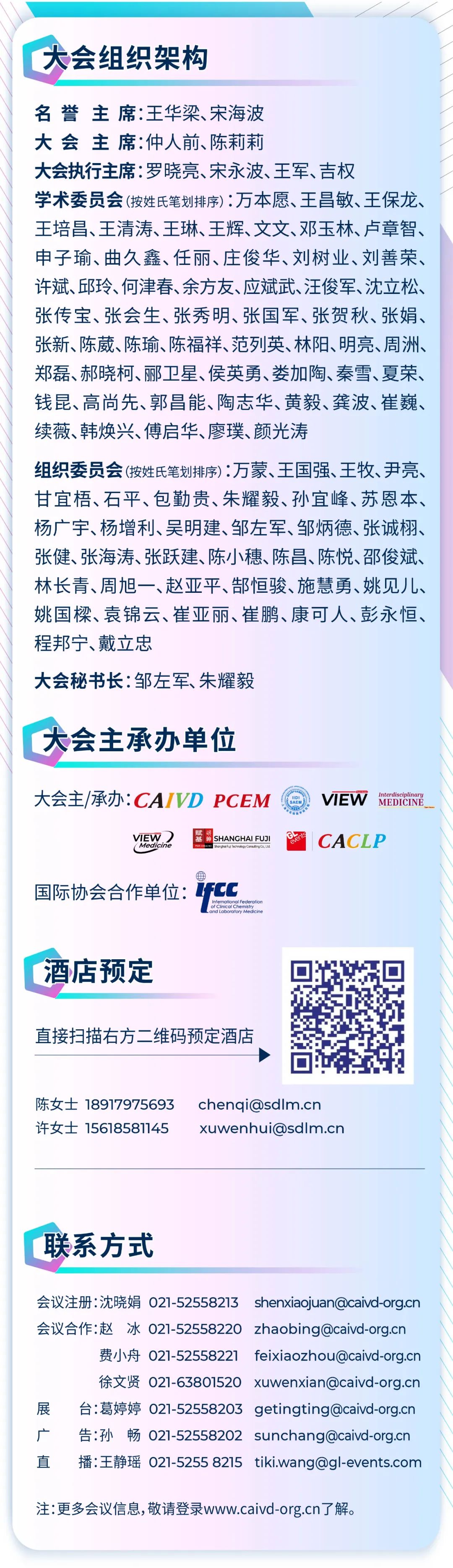 届时,由PCEM主办,CAIVD、上海市实验医学研究院、VIEW 期刊协办的“‘创之声’第九届中国实验医学大会(CEMC)”、CAIVD主办的“亮· 检验—第七届体外诊断青年企业家论坛”、“第六届中国IVD流通企业论坛”、“第四届中国体外诊断关键原材料及零部件论坛”以及由智奥瑞和(上海)展览有限公司主办的第二十一届中国国际检验医学暨输血仪器试剂博览会(简称“CACLP”)、第四届中国国际IVD上游原材料制造暨流通供应链博览会(简称“CISCE”)亦将同步举行。