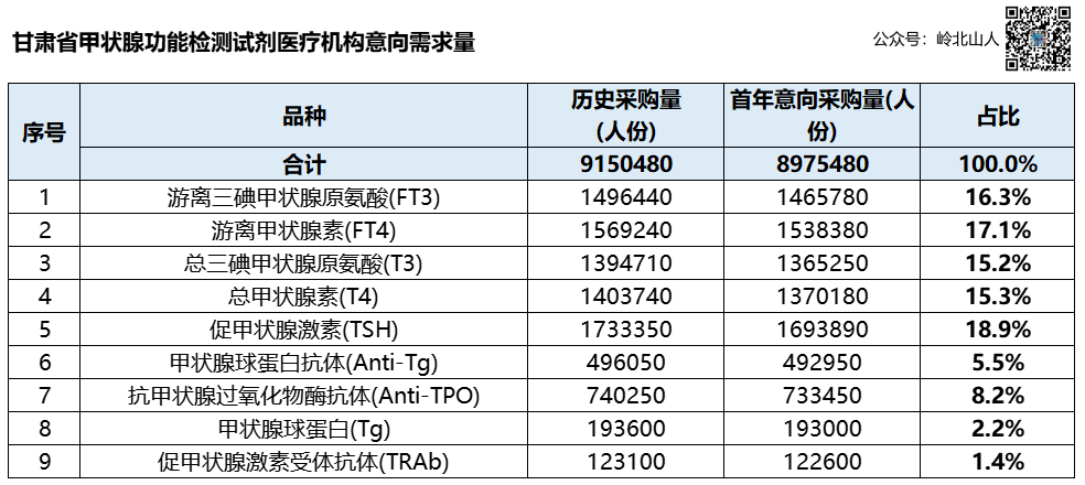 本次带量采购采取综合评分+专家评审相结合的方式,通过招采子系统进行报价解密,以及最后的议价谈判,与专家组意见达成一致的,获得拟中选资格。根据拟中选结果来看,临床主流产品均中选,可充分满足医疗机构采购需求。据甘肃医保局消息,下一步,将组织医疗机构开展协议量确认等工作,做好中选结果执行前准备。同时,还将探索开展试剂检测医疗服务价格调价工作,巩固甲功检测试剂集采降价成果,有效减轻患者医疗费用负担。