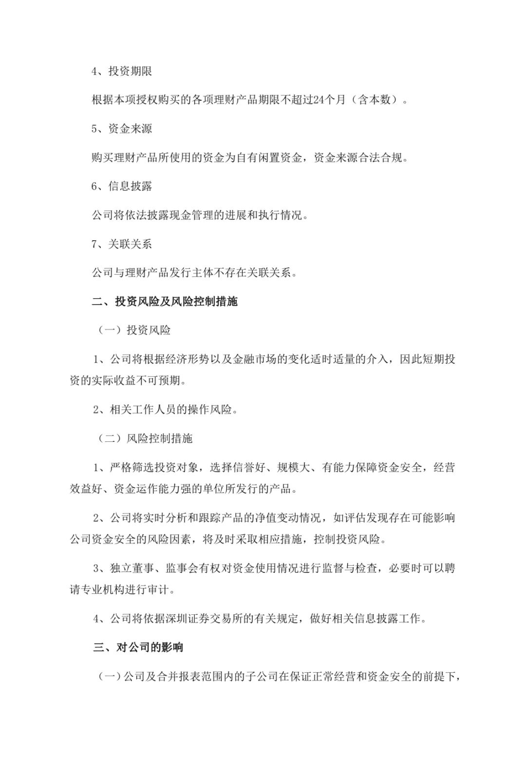 3月21日,广东凯普生物科技股份有限公司发布公告,为提高暂时闲置自有资金的使用效率,合理利用暂时闲置自有资金,获取较好的投资回报,广东凯普生物科技股份有限公司(以下简称“公司”或“本公司”)于2024年3月20日召开第五届董事会第十六次会议、第五届监事会第十一次会议,审议通过了《关于使用闲置自有资金进行现金管理的议案》,同意公司及合并报表范围内的子公司在不影响正常经营及确保资金安全的情况下,使用不超过80,000万元(含本数)的闲置自有资金进行现金管理,用于购买安全性高、流动性好的理财产品。在授权的期限及额度范围内,资金可以滚动使用。本议案无需提交公司股东大会审议。 在保证正常经营的前提下,提高公司闲置自有资金使用效率,增加公司收益,公司及合并报表范围内的子公司拟使用不超过人民币80,000万元(含本数)的闲置自有资金进行现金管理。 拟投资的产品须符合以下条件:期限不超过24个月(含本数)的银行、证券公司的安全性高、流动性好的低风险投资产品。不用于其他证券投资,不购买以股票及其衍生品、无担保债券为投资标的的理财产品。 自公司董事会审议通过之日起24个月(含本数)内有效;在本决议有效期内,上述额度可滚动使用。 具体公告内容如下: |