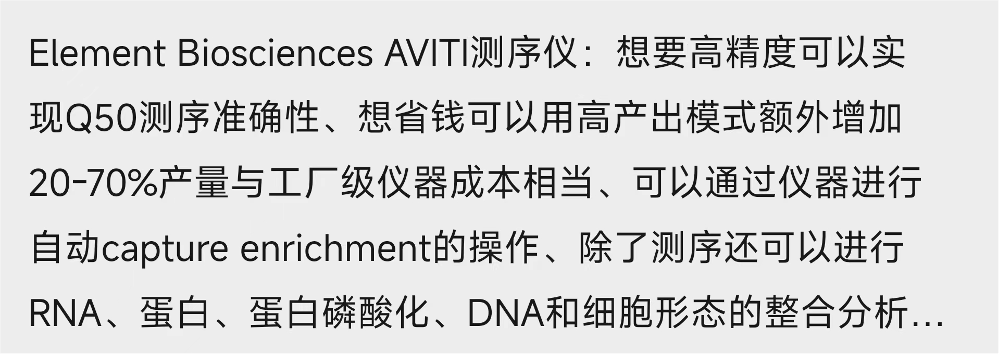 既“炫酷”又“实用”是怎么肥事?😂 “方方正正的一个大盒子+大屏幕”——不知道什么时候起,NGS测序仪的样子就被固化了。 如果一台测序仪不仅可以泡澡,还能一键挪走别的测序仪,更重要的是能边测序边看喜羊羊,大家觉得可还好? 这事儿要从一次“意外”开始…… 众所周知,作为一个接不到不接广告的公众号,什么甲方爸爸的周边、礼物之类的,不存在的。 所以,当女神节收到这么一个盒子的时候,我有点懵。——拆开来一看,更懵了:里面是这么一堆东西: 从零件上面的“AVITI”字样来看,应该是Element寄来的,于是我联系了JoJo: “它里面是散的零件,要靠自己拼的吗?” “当然要自己拼咯 ”JoJo还很贴心的给我发来了安装指引,两个文件300多MB——呵,幸好第二个文件一直没有接收成功,不然就不得不看了 既然没有安装指引,我就把这一堆零件随手放在了旁边,然后被还在上幼儿园的MM小盆友拿走了。 等过了一段时间我再想起来它的时候,MM小盆友说她已经拼好了,喏,长这样: 我的感觉只有两个字:炫酷! 她还给产品做了详细的功能介绍: 大家觉得哪个功能最有卖点?(MM小盆友选的是“喜羊羊”)。 苍白,实在是太苍白了!如果想正经了解Element AVITI,还是看看海王和建设兄吧😂: 最后,那些零件“正常”拼出来长啥样? u1s1,还原度还是挺高的,细节也很到位。 但是,真的有人会正儿八经的拼成这样吗?大夹子什么的不香吗? Element的伙伴们应该也是这么想的吧: |