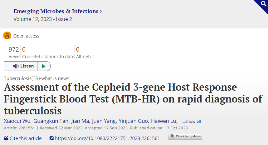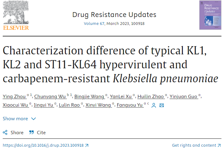 随着抗生素的广泛使用和滥用,耐药菌的出现与蔓延已成为全球公共卫生领域面临的严峻挑战。临床常见耐药菌不仅增加了医疗成本,也显著提高了其治疗失败率和死亡率的风险。揭示其细菌耐药机制、传播途径以及开发新的治疗方法和预防策略意义重大。 今天,检验君为大家分享的是同济大学附属上海市肺科医院检验科余方友教授团队近年来关于耐甲氧西林金葡菌、肺炎克雷伯菌、结核分枝杆菌等临床耐药菌的研究前沿。 近年来,碳青霉烯耐药高毒力肺炎克雷伯菌因具备耐药谱广和致死率高两大特点,给我国乃至全世界的抗感染治疗带来严峻的挑战。 日前,同济大学附属上海市肺科医院检验科余方友教授团队的一项研究通过遴选和表征KL1、KL2和ST11-KL64型三种典型碳青霉烯耐药高毒力肺炎克雷伯菌的分子特点和差异,探索了促使优势克隆群流行传播的相关因素。该研究发表在Drug 该研究从11家三级教学医院中分离出109株碳青霉烯耐药高毒力肺炎克雷伯菌,依据进化分析从中遴选出KL1型CR-hvKP、KL2型CR-hvKP及ST11-KL64hv-CRKP三株典型的碳青霉烯耐药高毒力肺炎克雷伯菌进行后续研究。 研究发现,与ST11-KL64hv-CRKP相比,KL1、KL2高毒力谱系的耐药性决定因素明显较少,对抗生素的耐药性水平较低。尽管在所有这些分离株中都能检测到blaKPC基因,但KL1/KL2-hvKP菌株没有表现出相应的高水平碳青霉烯类耐药性。与抗性特征不同,该研究并没有观察到三种菌株之间显著的毒力差异。研究中的ST11-KL64 此外,该研究发现pLVPK样毒力质粒和IncF-blaKPC-2质粒对形成高毒力和耐碳青霉烯的肺炎克雷伯菌至关重要。在这些毒力质粒和blaKPC-2质粒中,转移位点起源(oriT)的保守性表明,毒力质粒可以在blaKPC-2质粒的帮助下转移到CRKP。毒力质粒和blaKPC-2质粒的共存促进了ST11-KL64hv-CPKP的形成,从而在抗生素作用下行成院内感染。 总之,该研究发现ST11-KL64 文章链接: 结核病是一种由结核分枝杆菌引起的传染性疾病,对全球公共卫生持续构成重大威胁。随着结核分枝杆菌耐药菌株的出现,也对我们的检测工具提出了新要求。但目前而言,不同诊断试剂盒在诊断效率、抗结核药物覆盖范围和相应的耐药基因位点方面存在一定差异。 日前,同济大学附属上海市肺科医院检验科余方友教授团队的一项研究表明,靶向NGS测序技术(tNGS)在结核病鉴定及一线耐药检出方面表现出巨大潜力。该研究发表在Journal 该研究纳入疑似肺结核患者130例,使用tNGS对参与者支气管肺泡灌洗液的cfDNA进行结核分枝杆菌检测以及一线耐药检测。发现tNGS对结核分枝杆菌的检出率为63.1%,明显高于抗酸杆菌涂片镜检、培养和免疫学检查的检出率。与快速自动化的实时核酸扩增检测方法(Xpert 随后,通过一线抗结核药物耐药检测,Xpert检出4例利福平耐药,对比药敏试验,发现存在1例假阳。该假阳案例经tNGS和药敏试验检出均为异烟肼耐药。以药敏试验为参照标准,tNGS检测利福平耐药性的敏感度和特异度均为100%,检测异烟肼耐药性的灵敏度和特异度分别为80%和100%。 总之,该研究表明tNGS检测方法对结核病诊断具有一定的指导意义,其检出效能或与Xpert 文章链接: 耐甲氧西林金黄色葡萄球菌(MRSA)是一种对许多抗生素具有抗药性的细菌,能够引发严重的感染。近年来,一种名为ST764的MRSA克隆型在中国和亚洲其他地区快速传播,备受关注。然而,我国对MRSA 日前,同济大学附属上海市肺科医院检验科余方友教授团队的一项研究探所了我国新出现的高毒力MRSA 在该项研究中,研究人员鉴定了2014年至2021年间从我国五个城市收集的52个ST764 小鼠脓肿模型表明,ST764-t1084分离株的毒力与以高通气性著称的金黄色葡萄球菌USA300-LAC的毒力相当。有趣的是,ST764-t002分离株比ST764-t1084分离株表现出更强的生物膜形成和细胞粘附能力。这也可以解释为什么ST764-t002亚克隆近年来在中国越来越普遍。 系统发育分析表明,中国ST764分离株与日本KUN1163分离株亲缘关系密切。值得注意的是,基因组分析显示,52个ST764分离株不携带精氨酸分解代谢移动元件,这与日本的ST764隔离株不同。此外,与KUN1163相比,大多数ST764分离株(69.23%)在SCCmec 总之,该研究揭示了MRSA 文章链接: 世界卫生组织已经确定了新的结核病诊断的优先目标产品,其中包括基于快速生物标志物的非痰液诊断测试,使用易于获取的样本。结核分枝杆菌宿主反应检测试剂(MTB-HR)能够检测人全血、指尖血结核特异性宿主应答反应,通过评估3个特征基因(GBP5、DUSP3、KLF2)的表达水平来辅助诊断结核病。 日前,同济大学附属上海市肺科医院检验科余方友教授、结核科沙巍教授团队探究了MTB-HR多结核病筛查和分类试验的潜力,并表明其具有更高的诊断收益。该研究发表在Emerging 该研究纳入了192例活动性结核病患者、137例结核分枝杆菌潜伏感染者、224例其他肺部疾病患者以及100名健康志愿者。发现MTB-HR在区分未经治疗的活动性结核病与非活动性结核病、结核分枝杆菌潜伏感染、其他肺部疾病和健康志愿者方面的相应AUC值分别为0.814(95%CI:0.760-0.868;敏感度为76.1%,特异度为71.6%)、0.739(95%CI:0.667~0.812;敏感度为59.7%,特异度为78.1%)、0.825(95%CI:0.770~0.880;敏感度为82.1%,特异度为65.6%)、0.892(95%CI:0.839~0.945;敏感度为76.1%,特异度为88.0%)。当只纳入TAT小于1小时的标本时,MTB-HR在区分未经治疗的活动性结核病与非活动性结核病的AUC最大,为0.920(95