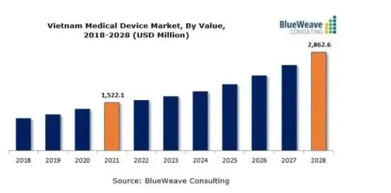 这些因素为越南医疗器械市场参与者开辟了许多的新途径。 05 越南国内医疗器械市场的水平不断增长,越南的医疗器械市场正在发展,它是该国增长最快的行业之一。卫生部的医疗设备和卫生工程部负责管理该国的医疗设备。该国监管当局向企业提供的可获得医疗器械批准的几种有利方案,正在帮助该市场在未来几年的扩张。 越南医疗器械市场按器械类型划分,越南医疗器械市场已细分为呼吸设备、心脏病设备、骨科设备、诊断成像设备(放射设备)、内窥镜设备、眼科设备等设备。在细分中,心脏病设备在越南医疗设备市场创造了最高的收入。这可以归因于心血管疾病的日益流行,这直接增加了对心血管设备的需求。同样,呼吸系统疾病发病率的上升也增加了该地区对呼吸系统设备的需求。 越南政府鼓动进口医疗器械,因为当地生产无法满足需求。进口医疗器械进口关税低,无配额限制;然而,医疗器械必须遵守卫生部制定的法规和许可证要求,只有在越南注册并拥有进口许可证的合法经营实体的公司才有资格经销医疗设备。 |