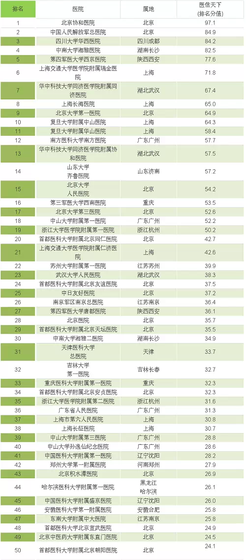 在公布名单的同时,影响力排名的评价标准也随之公布。主要标准如下:检索中国引文数据库,进行机构统计,统计截止7月1日,医院发表医学专业论文量、医学专业论文H指数、医学专业论文总被引频次;检索GoPubMed数据库,进行机构统计,统计2008年10月31日至2013年10月31日,医院发表医学专业论文量、医院发表医学专业论文最多医生。 结合医信天下团队中国医学科学院医学信息研究所许培扬先生、徐立水先生领衔的专家评定,分析研究医院科研水平和临床技术水平,对医院做出技术评价和综合评价。并按照一定比例换算得出总排名分值,即医信天下中国医院影响力排行榜。 医信天下对上榜医院根据医院特点分别给出推荐理由。在医院特色评价中,通过查询资料及团队专家讨论给出特色介绍;通过检索查询国内外医学数据库给出医院科研水平分析;通过医院各专科声誉度及团队专家讨论给出最佳科室推荐;最后附上国内外高质量论文各10篇。 通过对上榜医院的特色评价,给出其上榜理由,并进一步加强对上榜医院的了解。