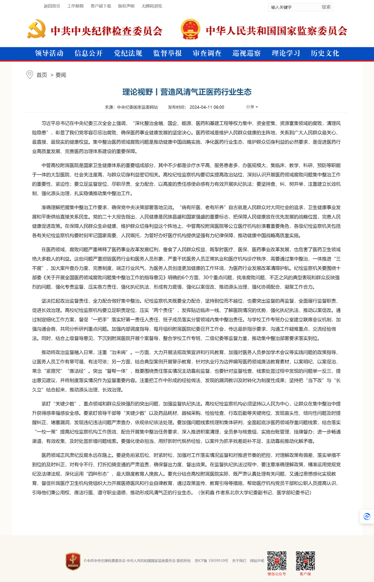 中纪委发布文章,聚焦关键人物,直指器械采购腐败。 开年以来,医疗反腐高压态势不减,监管力度和覆盖范围持续持续拓展。 2月,中纪委发布《李希在二十届中央纪委三次全会上的工作报告》,部署了2024年主要工作,其中包括继续紧盯重点问题、重点领域、重点对象、新型腐败和隐性腐败,把严惩政商勾连的腐败作为攻坚战重中之重,坚决防止利益集团、权势团体向政治领域渗透。 坚持个案查处与系统整治相结合,深化整治金融、国企、能源、烟草、医药、基建工程和招投标等权力集中、资金密集、资源富集领域的腐败。坚持向基层延伸,坚决惩治群众身边腐败问题,瞄准教育、就业、医疗等民生领域的痛点难点开展集中整治。 观察今年各类反腐文件,“关键人物”被提到的频率更为密集。 4月11日,中纪委发布题为《全方位管住关键少数》的文章,提出围绕重点环节、重要事项构建常态化监督机制,将“一把手”作为监督重点,紧盯权力运行关键环节,制定权力运行清单,构建“一把手”职责权力可查、可控、可纠正的运行体系。 此外,进一步畅通纪检监察机关、巡察机构与审计机关的情况通报渠道,优化协作配合程序,用好审计监督成果,加强对“一把手”履职用权情况、党风廉政建设情况等内容的信息共享。 目前各类大型医院巡查已在多地正式启动,巡查内容包括要加强对“关键少数”、关键岗位的监督,以及建立完善覆盖重点岗位、重点人员、重点医疗行为、重要药品耗材、大型医疗设备、信息化建设、基础设施建设、大型修缮项目等关键节点的监测预警体系和监管机制,并做好问题处置和持续改进。 02 多部门出手,内外拆解器械采购顽疾 药械采购是滋生腐败的重灾区,医疗领域的落马干部们也多折戬于此。 中央纪委国家监委网站发布的《江苏持续推进高值医用耗材阳光采购切实减轻患者负担有力监督促专项整治走深走实》中提到,自2017年至2019年,江苏省查处医用耗材采购贿赂案件占医疗卫生领域商业贿赂案件的46.7%,已超过药品回扣案件,位居首位。 今年以来,国家和地方上针对器械采购方面的监管趋势日益趋严,相关细则接连发布。 招投标方面,近日国家发改委、国家市监局等8部门联合发布《招标投标领域公平竞争审查规则》,提出:不得为招标人指定定标单位或者定标人员;不得将定标权交由招标人或者其授权的评标委员会以外的其他单位或者人员行使;不得规定招标投标交易服务机构行使审批、备案、监管、处罚等具有行政管理性质的职能等。 4月8日,湖南省卫健委发布《湖南省卫生健康委关于进一步规范全省公立医疗卫生机构药品、设备、医用耗材等采购管理的通知》,要求建立健全设备采购需求全过程集体决策制度;不得在医用耗材遴选、采购和使用中牟取不正当利益;严禁设置倾向性、排他性参数和指标,严禁设置不合理和歧视性条件等。 3月11日,内蒙古印发《内蒙古自治区政府采购领域专项治理工作方案》,自3月开始启动政府采购领域专项治理,彻查违规收费、虚假应标、围标串标、行贿等一系列采购领域的违法违规行为。 采购管理方面,财政部等四部门联合发布《关于进一步加强公立医院内部控制建设的指导意见》,提出要有效防范舞弊和预防腐败,提高资源配置和使用效益,具体到药械采购包括: 严格落实国家药品和医用耗材采购政策,明确职责划分与归口管理,确定药品、医用耗材、仪器设备、科研试剂等品类多、金额大的物资和设备,以及信息系统、委托(购买)服务、工程物资等采购过程中的关键管控环节和控制措施。 多部门内外监管同步推进,医疗腐败链条正在逐渐被拆解,药械市场生存规则已然转变。 附全文: |