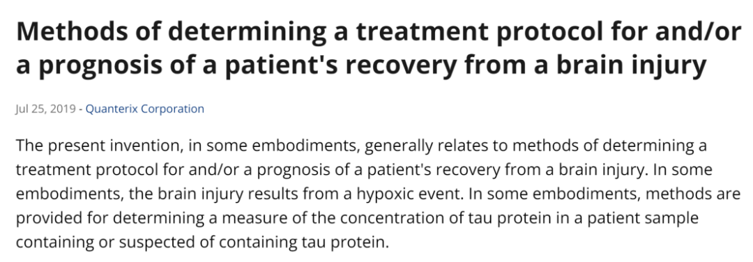 我们回到前面提到的Quanterix打算将ptau-217作为专利保护起来,杜克大学法学教授/知识产权专家Arti Rai表示,tau蛋白定量水平的专利侵权索赔建立将具有挑战性,因为这类似于自然法则,是不可申请专利的,但实验室检测的方法可以申请专利。