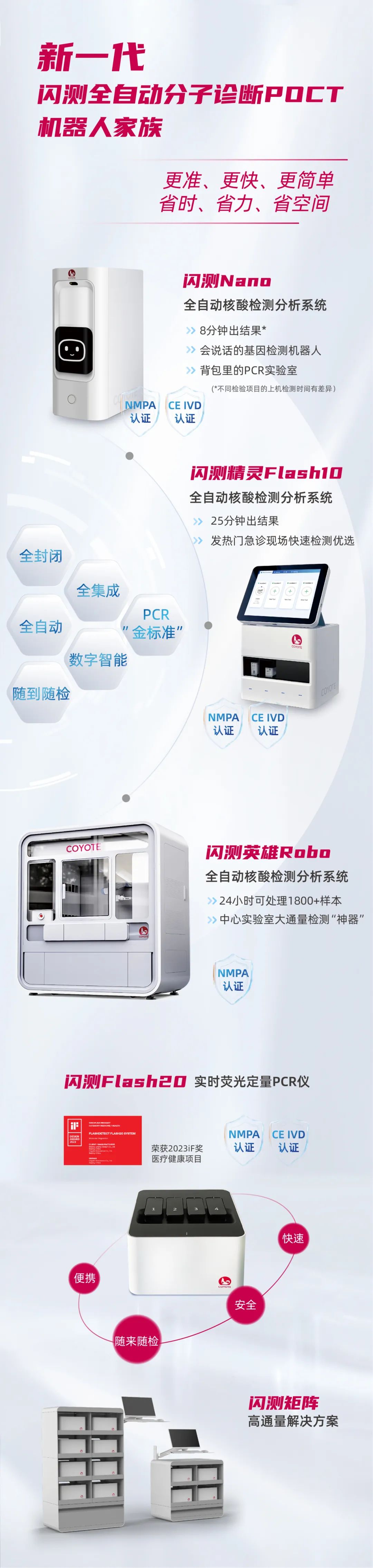 呼吸道合胞病毒(RSV)及肺炎支原体(MP)是引起儿童和青少年社区获得性肺炎(CAP)最主要的两种病原体,流行高峰期发病率可高达30%-50%。RSV和MP都具有发热、咳嗽等相似症状,在临床表现上难以区分。更关键的是,这两种疾病主要发生在儿童及免疫力低下人群,若未及时准确识别病原体并精准用药,常会引发重症,甚至危及生命。 因此,对于RSV和MP感染,及时准确的诊断至关重要。 《中国儿童肺炎支原体感染实验室诊断规范和临床实践专家共识(2019年)》提出,重症MP肺炎治疗挑战性大,需要早诊断、早治疗,实验室病原学诊断是MP感染诊断的关键。 《儿童呼吸道合胞病毒感染临床诊治中国专家共识(2023年版)》中也明确指出,核酸检测灵敏度高、特异性高、检测周期短,是临床上儿童RSV感染病原学诊断的主流方法。 卡尤迪呼吸道病原体 核酸检测解决方案 卡尤迪以先进的“闪测”分子POCT技术为核心,构建了一系列高效、精准的病原体检测方案,为临床提供速度更快、结果更准、操作更简单、实验更安全的精准诊断技术保障。 更多新品信息 及“闪测”呼吸道病原体核酸检测解决方案, 欢迎您致电:400-807-3999 咨询洽谈! |