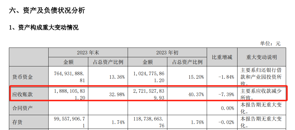 2023年度应收账款情况:应收账款18.88亿元,多为内地各省市、地方政府及公立医疗机构拖欠。