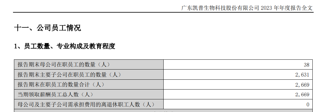 2023年度员工变动情况:相比于2022年度减员670人,主要是生产、质检,研发与技术,行政人员减员。