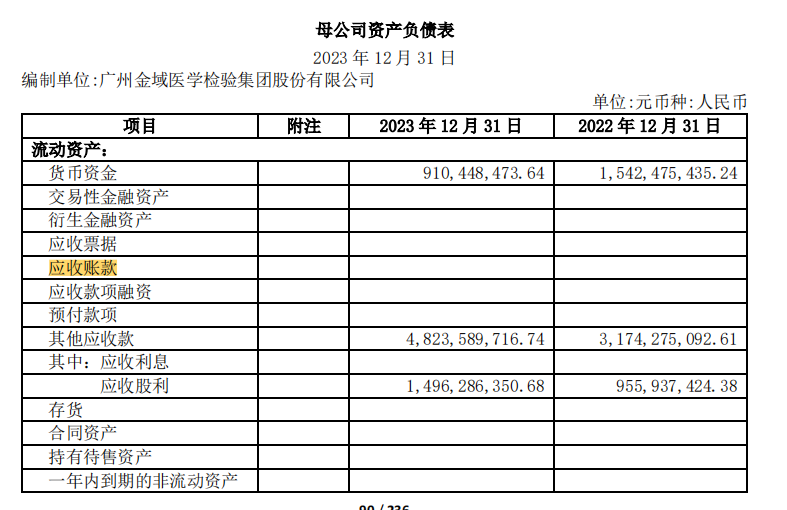 从应收账款来看,金域医学2023年期末的营收账款依旧高达48亿,与2022年期末相比(31.7亿)应收款进一步增大。