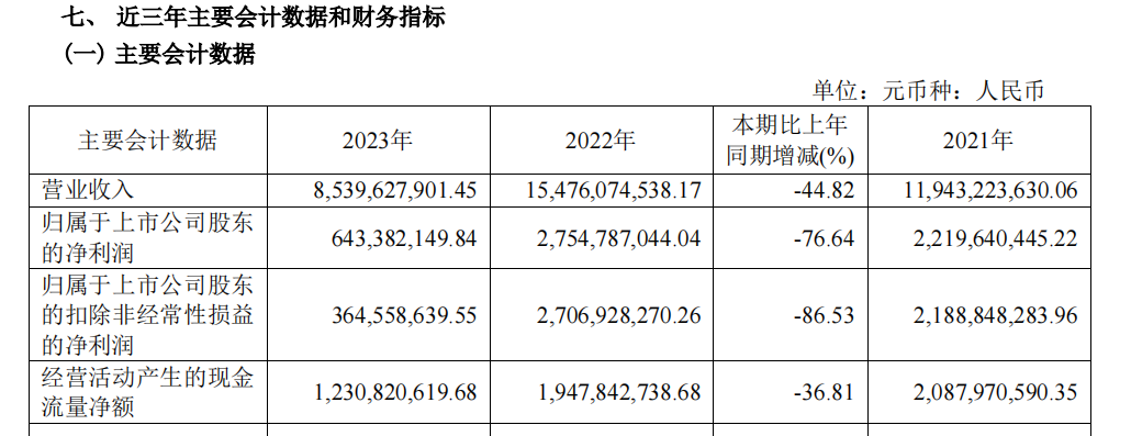 4月26日,金域医学发布2023年财报,公司营业收入由上年同期 1,547,607.45 万元下降至 853,962.79 万元,同比下降44.82%,从而导至归属于上市公司股东的净利润同比下降 76.64%,归属于上市公司股东的扣除非经常性损益的净利润同比下降 86.53%。