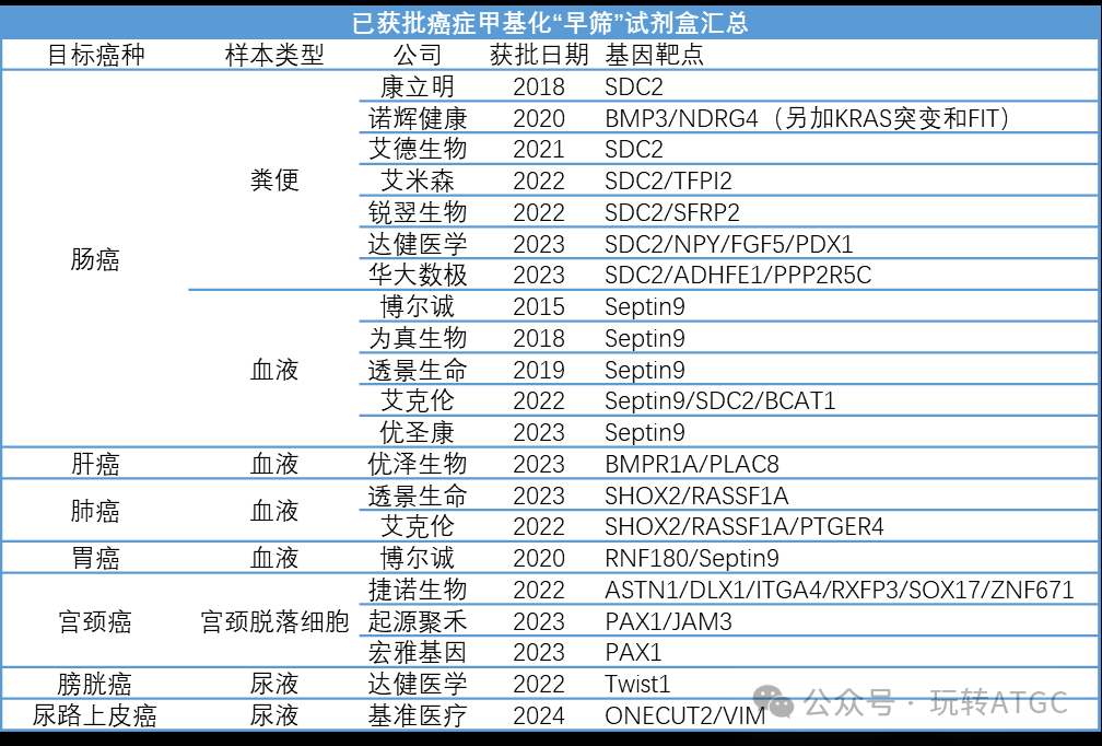 NMPA已经批准的癌症甲基化“早筛”试剂盒汇总如下: