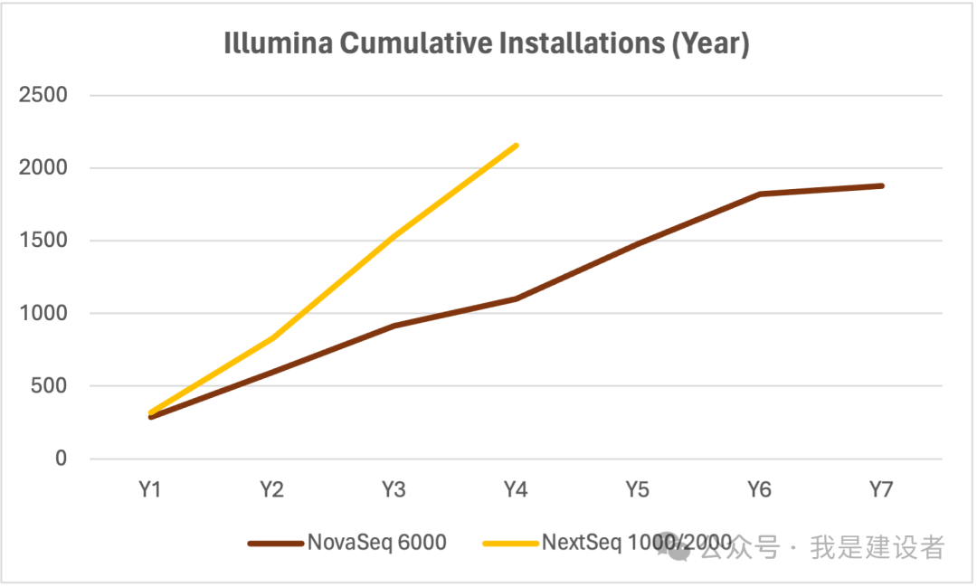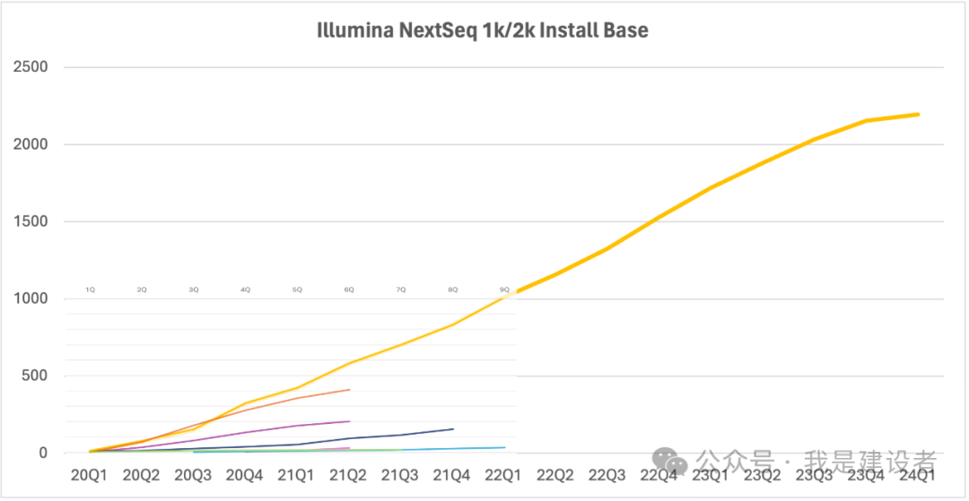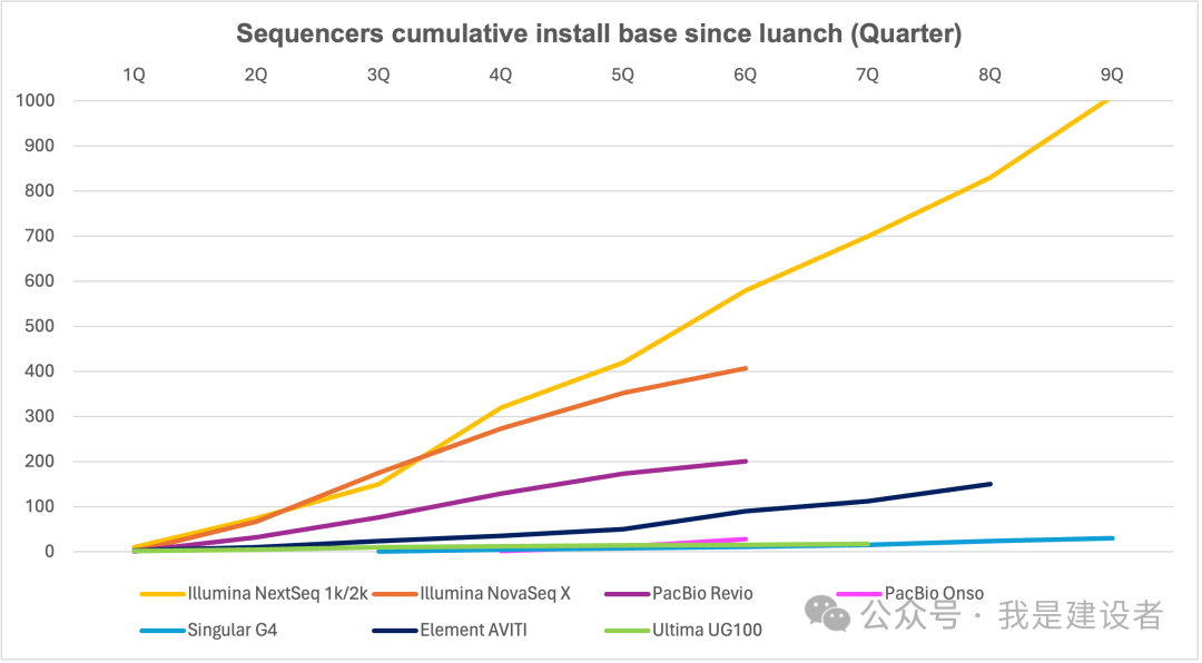 如题,直接上图。 注:根据官方发布的数据整理汇总,部分数据基于官方新闻进行了合理推测。 如果对比来看,Illumina发布的NextSeq 1k/2k以及NovaSeq X其实还算比较成功。 而NextSeq 1k/2k的挑战者们似乎都还没有完成缓慢的爬坡过程,这其中Singular G4似乎已经知难转向了,只有Element AVITI站了起来。 Illumina在20年1月的JPM会议上宣布推出NextSeq 1k/2k,随即3月份宣布发货,到现在已经进入到商业化销售的第五个年头。如果看过去17个季度的出货情况,NextSeq 1k/2k直到上一个季度都呈现了相对稳定的增长势头。 当然,彼时还不存在竞争这回事儿。 在发布NovaSeq 6000六年后,Illumina推出了升级版的NovaSeq X。作为高通量的旗舰机型,NovaSeq 6000逐渐完成了历史使命。 如果看累计装机量,MGI在过去的三年中呈现了高增长态势。从总装机量上来看,已经妥妥地成为了Illumina的最直接竞争对手。 如果区分测序仪的通量来看,MGI在中通量上的装机已经直逼Illumina,这也难怪Illumina在季报中称,其中通量系统受到了很大的挑战。 最近的美国生物安全法案草案毫无疑问为美国市场的不公平竞争制造了借口,MGI在美国市场销售可想将面临更多人为的阻碍。 从官方披露的数字来看,截止23年底,MGI累计在美洲区装机超60台。而最近Element发消息称,全球装机已经超150台。按照这样的数字,Element大概率在美国装机已经超过了MGI,成为Illumina强有力的挑战者。 而在中国,MGI的装机量则稳步提升,去年的装机近700台,已经超过了Illumina,也远高于后面的真迈。 不管怎么样,Illumina的市场份额已经在被逐渐侵蚀,但对于这些挑战者们来说,想要更快速渗透、转化Illumina的全球客户基数,可能都还需要一些时间。 或许竞争的主战场是在未来有无限可能的新客户及新增应用领域。 文中任何不足的地方,欢迎指正、更新、留言讨论。 |