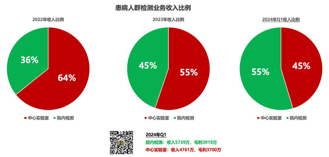 PS:本文引用资料均来自公开渠道,受限于个人认知水平,文中观点仅供参考。 01 “还行的成绩” 2024年Q1,燃石的整体收入是1.26亿。 坏消息是:的确挺惨,同比下降11.9%。 好消息是:不是最惨,环比上涨了3.7%。 相比2023年Q3/Q4连续两个季度的同比+环比双降,至少有一条腿先刹住车了。 从收入结构上,燃石的转型进行的非常坚决: 院内检测在收入上第二次、毛利上首次超过了中心实验室 ——收入差距拉开到接近1000万,毛利反超了200万,和2022年、2023年全年相比更明显。 伴随着收入结构的扭转,销售费用的占比进一步降低: 换成我们更喜闻乐见的口径:花一块钱销售费用赚回多少钱。 这份成绩单好看么?也许勉强还行。 但这里面藏着一个问题。 02 “需求怎么了” 从院外往院内转型——这是燃石很早就喊出的方向,也是行业没有什么疑问的趋势。 转型有两种情况: 1. 新的市场有更大的“需求空间”,转型是为了寻求更快速的增长。 2. 旧的市场因为某些原因注定消亡,转型是为了稳定接盘旧市场。 现在的转型属于哪一种? 从数据来看,燃石的收入结构扭转是“此消彼长”的结果: 1. 中心实验室收入4761万,是4年以来的倒数第二,仅以微弱的“优势”压过了2020年Q1的4614万,相比于巅峰的8999万接近腰斩。 2. 院内检测收入5739万,是4年以来的巅峰值,已经3倍于2020Q1时的1712万。 “左手倒右手,只是把鸡蛋放在了更安全的篮子里” 虽然挺不愿意承认,但似乎答案是第二个。 而且这种左手倒腾右手并不是无损的。 最显著的就是随着客单价的降低,一定会反应到总收入的瓶颈: 同时还有毛利率的降低给运营效率带来的巨大压力(下图为GAAP数据,可能和官方口径有点差异,主要在摊销上,但趋势是不变的): 虽然缺乏更多的同行业其他公司数据,但直观感觉燃石的情况应该并不是孤例。 也许可以做一个武断的推断: “肿瘤NGS的市场总需求当前是一个缓慢增长、甚至不增长的情况了” 这种情况下,大家竞争就是那么大一块蛋糕。 “你所得必然是我所失,院内所得只会是外送所失,甚至可能只是一部分” 怎么办? 03 “零和博弈” 如果一个行业有得选,竞合博弈一定好过零和博弈。 前提是:有得选。 回望起点,肿瘤NGS之前是如何繁荣起来的? 在过去的十年时间里,肿瘤治疗最大的变化是从传统化疗时代进入了靶向/免疫治疗时代。 这里面的驱动力是新药——层出不穷的新药和新靶点。 这些百花齐放的刚性治疗选择构建起了肿瘤NGS既往增长的根基。 所以当新靶点药物的涌现速度显著变缓时,肿瘤基因检测市场进入一个“总量增长变缓/停滞”是一个必然的事情。 “时来天地皆同力,运去英雄不自由” 零和博弈,是大家当前必然要面对的局面。 值得欣慰的是,燃石算是给出了零和博弈的一个参考答案: 在一个毛利更低的商业模式中,通过运营效率的提升,也是可以实现盈利的。 在去年的年报中,燃石给出2024年的目标是上半年breakeven,一季度开了个好头。 但,这并不够。 我们更关心的是,零和博弈是终点吗? 04 “等待戈多” 所有的肿瘤NGS业务其实都可以被统一概述成一个词 ——治疗选择,theraputic selection 过去十年,支撑这个业务发展的是“药物选择”。 而行业的未来是否能跳出零和博弈,也在于此。 MRD和早筛,之所以被全行业寄予厚望,是因为他们提供了另一种层面上的治疗选择。 但这两者各有各的问题等待解决: 1. MRD:等待Natera的证明题。 MRD究竟只是一个“nice to have”的动态监控,还是一个“must have”的治疗决策依据? 下半年的两个“开奖”会给出一个初步的结论: ——IMvigor:“ctDNA+患者可以从免疫治疗中获益”&“ctDNA-患者无需用药治疗” ——ALTAIR:分子层面监测到复发可以通过提前用药干预带来获益 不夸张的说,全行业的目光均集中于此。 2. 早筛:可能还需要更久。 早筛的临床意义无需多言,但“无症状人群”天然的“支付意愿”较低和个体必然会面对的“投入产出不划算”会是制约其起量的一个重要因素。 解决支付问题,是早筛发展的核心。 这个情况一时半会无解。 因为美国的同行们,在一个人均收入更高、个人购买力更强的市场里,也依然会遇到这样的问题。
