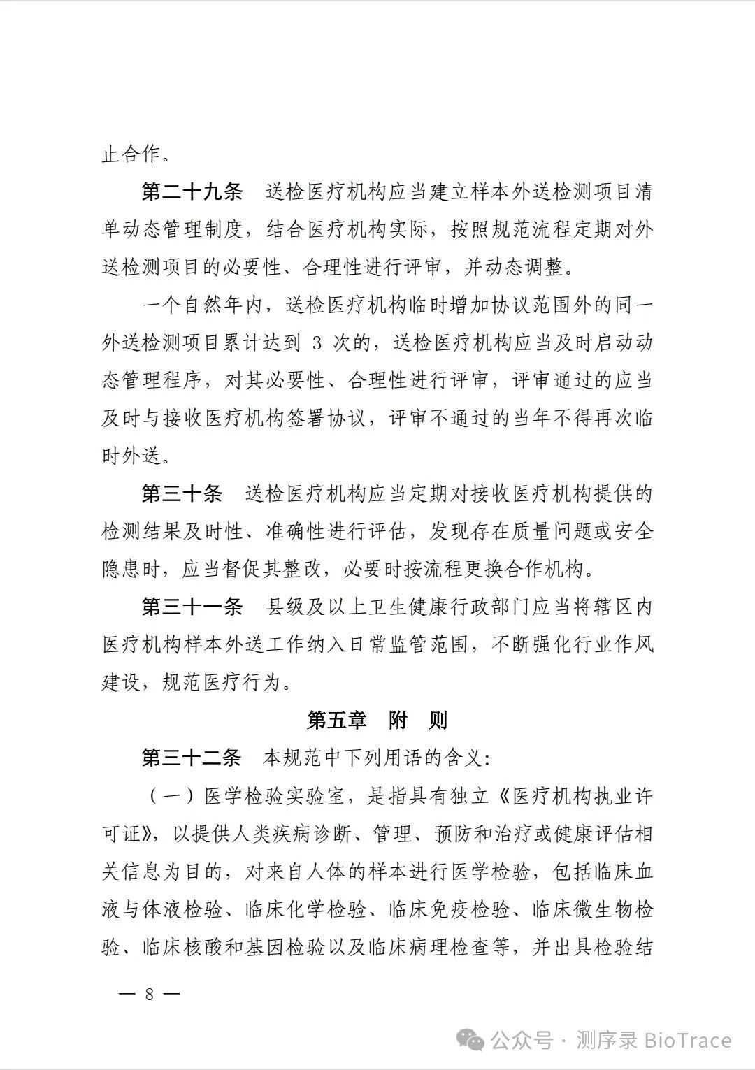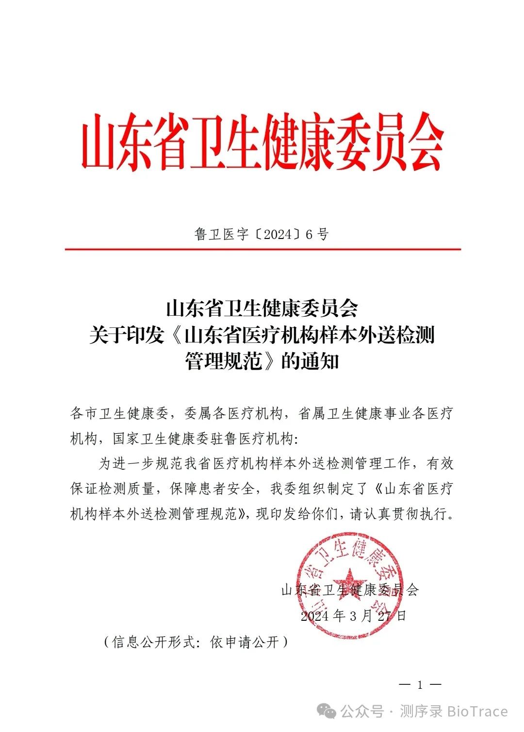 近日,山东省出台《山东省医疗机构样本外送检测管理规范》,对临床样本外送进行了更加详细的约束。 (1)鼓励医联体内部开展样本外送检测服务,城市医疗集团或县域医共体的牵头医院应当具备向成员单位提供医学检验、病理诊断等服务能力,为区域内提供同质化、标准化服务。 (2)送检医疗机构确定开展基因检测时,应当充分遵循询证医学证据,选择最新诊疗规范、指南和专家共识等中明确提及、高度认可、对患者诊断和后续治疗有明确意义的检测项目。对于无明确指征、花费较高的检测项目要严格把控,避免过多诊疗。 (3)送检医疗机构应当根据诊疗需求向接收医疗机构提出检测申请,接收医疗机构在完成检测后应当及时提供检测报告。接收医疗机构不得在送检医疗机构内直接面向患者开展服务。 (4)送检医疗机构临时需要增加协议范围外的外送检测项目时,由临床科室填写《医疗机构样本外送检测协议外新增项目审批表》,与检验/病理有关部门协商一致,报业务主管职能部门,经分管院领导审批同意后方可外送检测。 (5)送检医疗机构应当加强对本机构样本外送检测工作的事前、事中、事后监督检查,严防潜在廉政风险发生。当发现接收医疗机构有私自给予临床科室、医务人员回扣、提成等违法违规行为时,送检医疗机构应当按照协议有关约定终止合作。 附件:原文