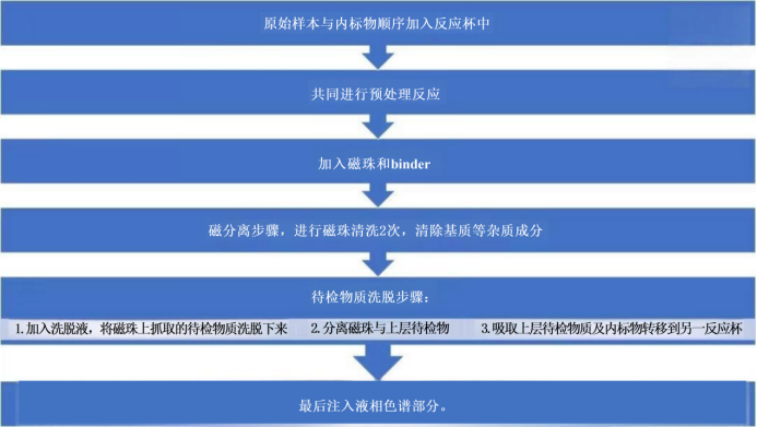 (1)可用于血浆、血清、全血等生物样本前处理,洗脱后目标物可富集,且无需过滤,无需氮吹浓缩,可直接进样检测。 (2)利用磁吸原理可实现全自动上样、淋洗、洗脱富集等步骤,与传统固相萃取技术相比,提取效率显著提高,队列式操作最快可实现100T/小时。