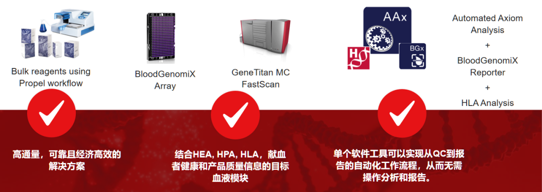 我们很高兴地宣布,赛默飞新推出的Applied BiosystemsTM Axiom BloodGenomiX Array和BloodGenomiX Reporter Software为血型研究带来了一种全新的解决方案。这种基于芯片的血型基因分型研究工具,可以在一次高通量实验中检测到广泛的扩展和罕见血型,以及组织(HLA)和血小板(HPA)抗原类型。这意味着实验室可以摆脱传统的、昂贵、耗时且大部分依赖手工的血型分型流程。 为输血和移植市场量身定制微阵列芯片 Axiom BloodGenomiX Array的高通量、基于芯片的血型基因分型研究解决方案,可以通过提供与扩展型抗原表型匹配的血液制品,减少溶血性输血反应的风险,从而支持病人护理的进步,使输血更安全。此外,新的Axiom BloodGenomiX Array是与国际输血基因组学联盟组织(BGC)专业人员共同开发,以便在全球范围内的实验室为扩展血型研究提供高度准确的结果。 输血基因组学联盟(BGC) 配合BloodGenomiX Reporter Software,可提供从质量控制(QC)到报告的自动化工作流程,使分析和报告变得简单高效。一块芯片就能覆盖大部分的扩展和罕见血型,组织(HLA)类型,和血小板(HPA)类型,以及铁调节和其他捐献者特性的广泛覆盖,使研究者能对捐献者的健康状况有全面的了解。这款产品提供384芯片格式,适合高通量基因分型。 血型解决方案工作流程 血清学检测一直被视为血型研究的金标准,但随着健康护理社区对分子基础扩展血型分型的高度准确、精确结果的认识增强,这种新型的血型研究工具将会成为未来的新趋势。 专家寄语 |