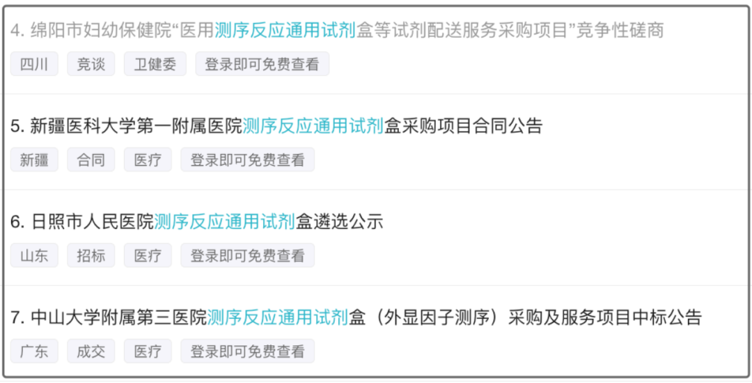 至于此次“被除名”后,此前已备案产品是否“失效”,是否会涉及重新“注册 or 备案”? 官方解读如此表述,尤其是第(二十一)条: 已获备案的347款产品,及后面更多的产品,是否会要求重新“申请分类界定”,待明确。 写在后面: 当我们以“测序反应通用试剂盒”搜索招标信息,会查询到很多结果:
