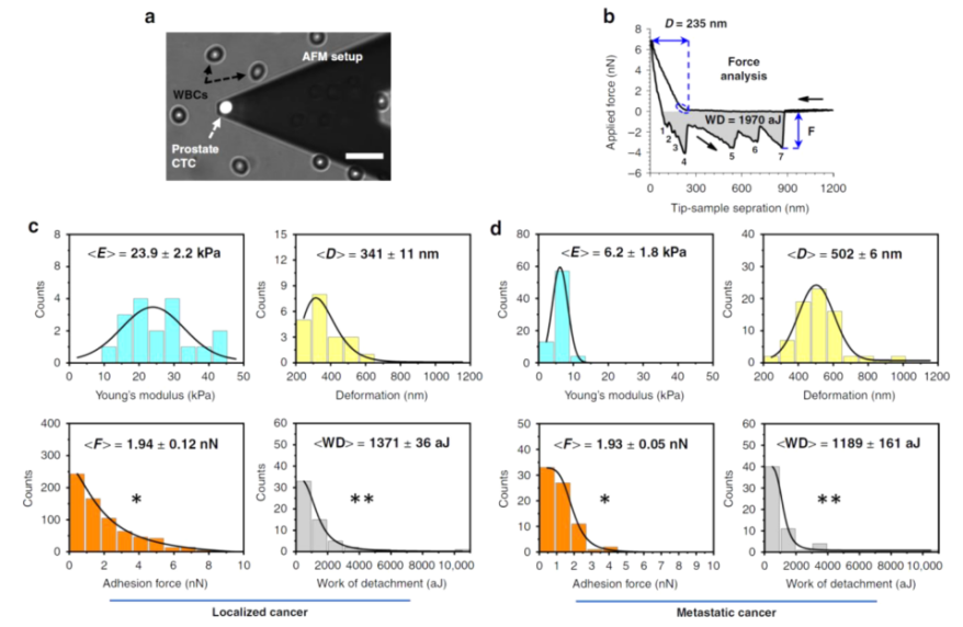 微流控捕获的局部和转移癌患者完整前列腺CTCs的AFM分析