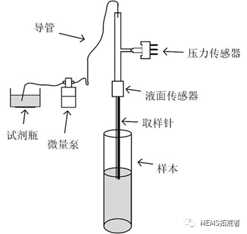 移液模块用来对待测液体(人体体液,如血清标本、尿液)进行定量吸样、分配,完成稀释或混合动作,是体外诊断仪器最终达到“高精度”检测目标的重要组成部分,具体由微量泵、取样针、导管、压力传感器、液面传感器等部件构成。