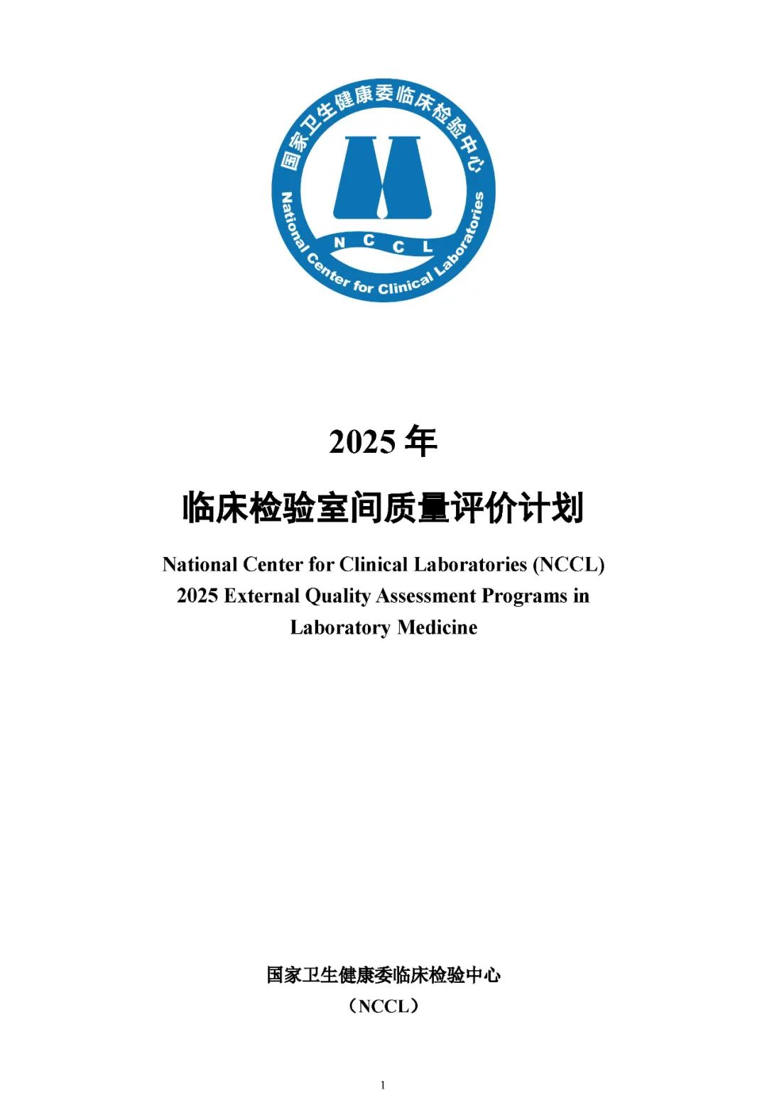 近日, 国家卫生健康委临床检验中心发布了2025年室间质评活动计划。