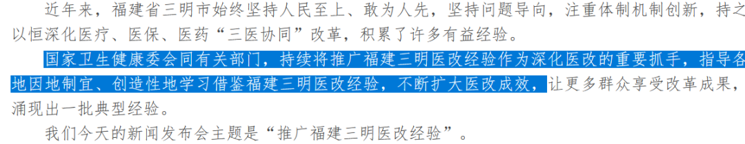 OK,司长的话您们不重视。2个月后,王炸来了,三明模式全国推广的确定性、力度,确凿无疑。