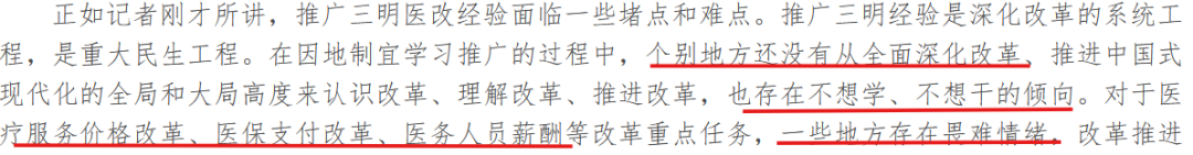 小越的预测成真,三明模式板上钉钉要全国推开了。我们回忆下5月份会议,三明模式推广的难点是:个别地方没有深化改革、不想学、不想干、畏难