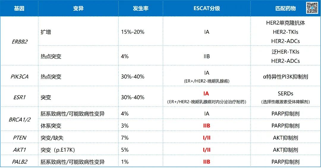 ▲ 晚期乳腺癌检测基因列表(ESCAT I/II级)