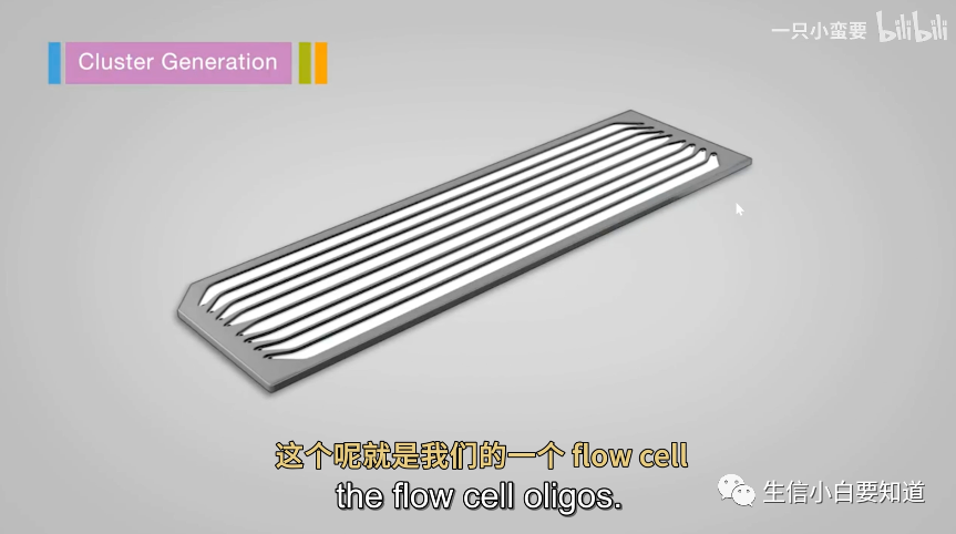 上面这个图展示的就是 flowcell 放大好多好多倍的样子,不知道是多少倍,反正放大到了可以让我们肉眼看清的倍数!