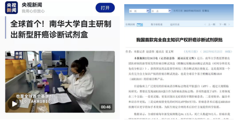 01 肝癌是我国第4位常见恶性肿瘤和第2位肿瘤致死病因, 数据显示年发病人数达到41.0万(占全球45.5%),年死亡人数高达39.1万(占全球47.1%)。由于肝癌早期症状不明显,难以发觉,近80%肝癌患者确诊时已处于中、晚期。 《原发性肝癌诊疗指南(2024年版)》明确指出,早筛早诊早治,是提升肝癌患者的长期生存率和生活质量的关键。 指南还强调了新型肝癌早期诊断标记物的临床价值,特别是在甲胎蛋白(AFP)检查阴性人群中的使用价值。 02 ▲《醛酮还原酶1B10测定试剂盒》(埃克欣®AKR) 《醛酮还原酶1B10测定试剂盒》(埃克欣®AKR) 由曹德良教授领导科研团队历经十余年深入研究而成,以新型、特异性血清标志物醛酮还原酶1B10(AKR1B10)为核心,定量检测人血清中AKR1B10蛋白水平,从而指征原发性肝癌风险,亦可用于原发性肝癌患者动态监测以辅助判断疾病进程或治疗效果。是我国首款具有完全自主知识产权的肝癌诊断试剂盒,已获得国家III类体外诊断试剂注册证(国械注准20233401965),为同品种产品首个,也是唯一一个III类注册证,被誉为“首个中国籍肝癌哨探”,受到行业高度关注,荣膺多个大奖。 ▲被人民日报、新华社、央视新闻等 20 多家权威新闻媒体聚焦报道 ▲部分奖项及专利证书 03 经中国医学科学院北京协和医院、湖南省肿瘤医院、湖南省人民医院、南华大学附属第一医院、湖北省肿瘤医院开展的累计超4500名样本的3次大规模多中心临床试验研究证实,醛酮还原酶1B10是一种新型有效的血清标记物,能够在肝癌诊断与病情监测上发挥重要作用: 1.肝癌预警、早期诊断 醛酮还原酶1B10较目前临床常用肝癌血清标志物AFP更灵敏、更特异,可望更早预警肝癌。 2.肝癌疗效评估、病情监测 0到1的突破。醛酮还原酶1B10可及时(3-5天)评估手术治疗效果与病情变化;AFP则需要1-2个月。 3.与AFP联合诊断肝癌高度互补,极大提高肝癌诊出率 AKR1B10可检出大部分AFP阴性肝癌、AFP阴性早期肝癌,两者联合使用可提高肝癌检出率达89.13%,早期肝癌检出率高达77.92%。 研究成果在国际肝脏病学领域顶级期刊Hepatology上发表,得到行业高度认可。 ▲ 文章刊登年限(2019年)期刊影响因子/JCR分区:14.97/Q1 04 上海东方肝胆医院等多家知名三甲医院临床应用性能试验证实:醛酮还原酶1B10对原发性肝癌的诊断性能优异,与预期用途一致:术前AKR1B10阳性患者在手术治疗后,AKR1B10 血清水平迅速且显著下降。 《肝细胞癌癌前病变的诊断和治疗多学科专家共识(2023版)》指出,醛酮还原酶1B10与其他标志物(SUOX、CD34)组合,对早期原发性肝癌诊断的敏感度和特异性分别为93.8%和95.2%。 05 《醛酮还原酶1B10测定试剂盒》 (磁微粒化学发光法) 产品规格:100人/份 参考值:369.3pg/mL 检测范围:50-10000pg/mL 检测样本:3-5ml血液 适用人群: 1.肝癌高危人群——肝癌筛查预警 ➣ 肝硬化 ➣ 乙型肝炎病毒或丙型肝炎病毒感染人群 ➣ 过度饮酒人群 ➣ 非酒精脂肪性肝炎人群 ➣ 其他原因引起的慢性肝病人群 ➣ 有肝癌家族史的人群 2.肝癌治疗后人群——及时评估治疗效果,监测复发 3.关注自身健康,主动体检人群 《醛酮还原酶1B10测定试剂盒》(埃克欣®AKR)目前已获得数个省份的医疗收费编码,以实际效果帮助临床有效检出早期肝癌,让更多的肝病患者受益。 更多细节,欢迎咨询 联系人:王总 联系方式1:13739089654(王总) 联系方式2:0731-88102081(公司) 关于湖南莱拓福生物科技有限公司 湖南莱拓福生物科技有限公司是一家集研发、生产、销售和技术服务为一体的生物医学高科技企业。公司历时十余年,开发了一系列基于全新肿瘤标志物——醛酮还原酶1B10(AKR1B10)的肝癌诊断试剂盒,属于境内同品种首个产品,在全球范围内亦无同品种产品;获得多项国家授权发明专利和省政府项目资金支持。2023年初,湖南省发改委批准莱拓福生物联合南华大学,以AKR1B10为研究核心,共同组建“肝癌早诊早治湖南省工程研究中心”。目前,公司拥有全球首款、全球唯一创新型国家级三类注册证一个,其它三类注册产品2个,二类注册产品10余个,一类注册产品20余个。 公司始终坚持“立德、立信、共创、共赢”的发展理念,坚守“追求卓越品质,点亮生命之光”的宏愿,努力推动肿瘤早诊早治,为服务人类健康做出贡献。 |