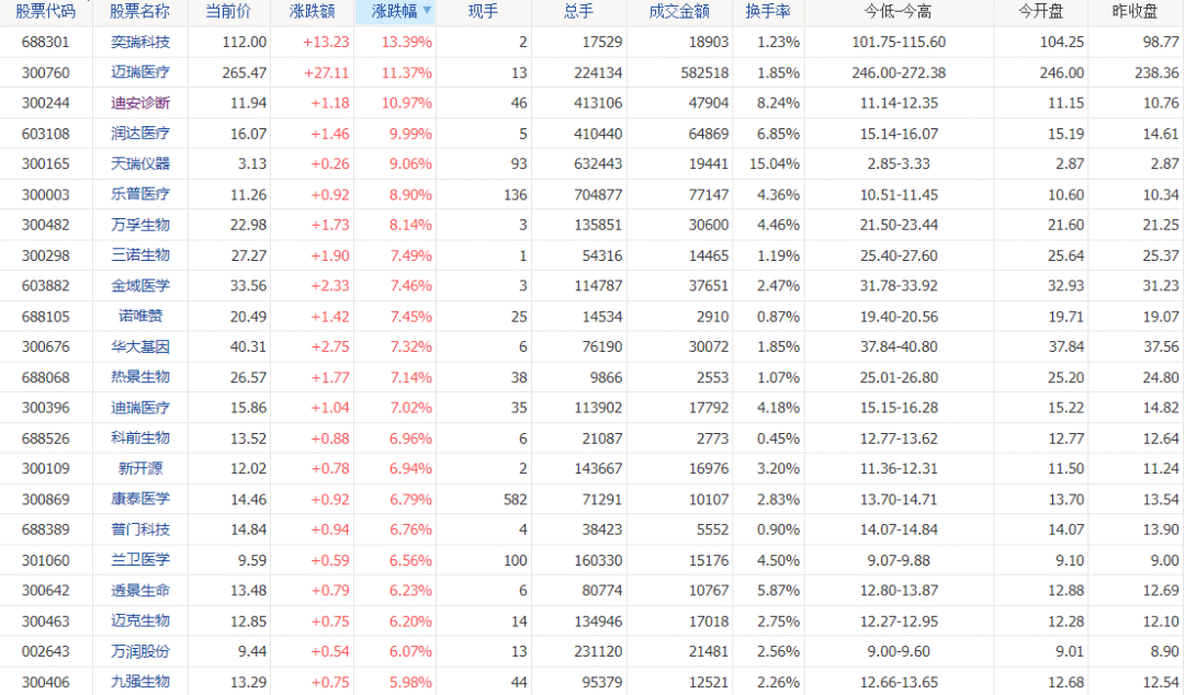 9月24日以来的A股,可谓喜气洋洋,重磅利好“组合拳”强势来袭。9月27日上午,更是出现了股民把大盘给买崩溃,导至交易所系统“瘫痪”,直接横了1小时,而创业板更是几乎涨停。 截止当日收盘,上证涨2.84%,创业板涨暴涨9.98%,深证的大涨6.63%,A股市场继续狂欢。 政策春风频吹 体外诊断未来可期 9月26日,重要会议指出,要努力提振资本市场,大力引导中长期资金入市,打通社保、保险、理财等资金入市堵点。要支持上市公司并购重组,稳步推进公募基金改革,研究出台保护中小投资者的政策措施。 在医疗科技日新月异的今天,体外诊断行业作为重要的医疗手段,越来越活跃于医疗科技创新的前沿,其技术进步更是引人瞩目。 虽然,当前IVD产业面临前所未有的变革和挑战,但是作为产业的特色功能和定位仍不可代替,其创新产品技术的价值仍是引领产业发展的原动力。 作为临床诊断信息的重要来源,体外诊断更是为疾病的预防、诊断和治疗提供了重要决策依据,是推动分级诊疗,实现精准医疗,支撑健康中国建设和应对重大突发性公共卫生事件的必备手段。 体外诊断板块全线飙红 欣欣向荣 在当前的市场环境下,体外诊断板块呈现出良好的增长态势。在政策的支持和市场需求的推动下。9月24日以来,体外诊断板块连续大涨,从2183.40点一路增长至27日的2512.81点,当日涨幅5.45%,成交额高达98.05亿,可谓是全线飚红。 从具体个股来看,奕瑞科技报112.00元,涨13.23%;涨幅第一,迈瑞医药报265.47元,涨11.37%;迪安诊断报11.94元,涨10.97%;瑞达医疗,天瑞仪器,乐普医疗,万孚生物等多只个股也大幅跟涨。 作为医疗行业的领军企业,迈瑞医疗在体外诊断领域占据着重要地位。27日上午迈瑞医疗股价大涨,最高涨幅超13%,占据体外诊断涨幅榜第一位,最高点股价到了272.38元,总市值涨幅逼近300亿。 但截止下午收盘,迈瑞医疗股价未能突破272.38元,报收265.47元。但也可见迈瑞医疗此次股价表现之强劲。 健康服务新业态 拭目以待 “窥一斑而见全豹”,不管是从近期股市表现来看,还是从体外诊断行业市场需求分析,目前中国体外诊断市场需求逐步扩大! 可以看出,体外诊断板块在多方面因素的共同作用下,正展现出强大的发展活力和潜力。尽管体外诊断行业在我国属于新兴产业,与欧美发达国家相比发展相对滞后。 但是近年来,在创新医疗器械领域,我国政府多次出台强有力政策,着重提高医疗器械的创新能力和产业化水平,多维度鼓励医疗器械的创新,加快医疗器械的注册上市流程,推进相关领域国产化。 并且,近年来,随着人均可支配收入的提升、医疗保健意识的提升、医保报销比例的上升、老龄化的加剧等带来医疗保健需求的释放。体外诊断产品需求也将随着每年诊疗人次和人均检查费用仍将保持稳定增长。 |