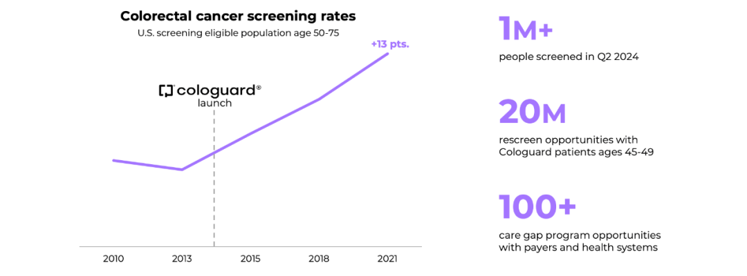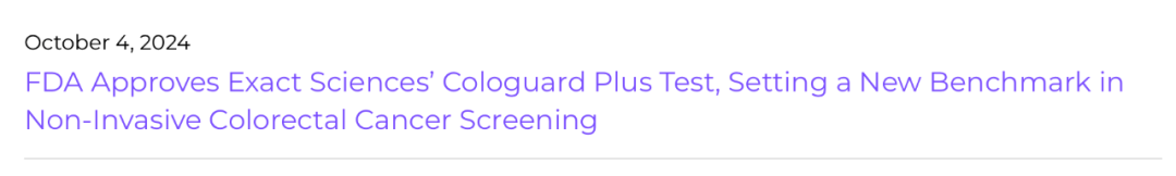 “十年磨一剑”的升级,推开的是下一个十年的星辰大海 故事的起点是3月14日。 当天,NEJM首次同时发表了两项重磅的肠癌早筛研究。 ECLIPSE和BLUE-C 四个月后的7月29日,ECLIPSE率先开花结果 ——Guardant Health的血检肠癌筛查产品Shiled获FDA批准 又过了两个月的10月4日,BLUE-C也终于修成正果 ——Exact Sciences宣布Cologuard Plus获得FDA批准,用于45岁以上平均风险人群的肠癌筛查。 这一天,距离Cologuard首次获批已经过去了十年。