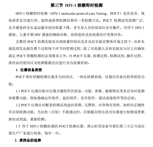 10月16日,中国疾控艾防中心发布《全国艾滋病检测实验室质量控制指南》,本次指南的更新颇具看点,不仅在参考世界卫生组织和发达国家发布的相关指南的基础上,也充分考虑了我国艾滋病检测工作的特点和实验室能力。除了常见的HIV RNA、DNA和耐药基因检测,本次更新的指南针对HIV核酸即时检测给了很大的篇幅,可见对HIV分子POCT产品应用的重视程度和未来的应用潜力。